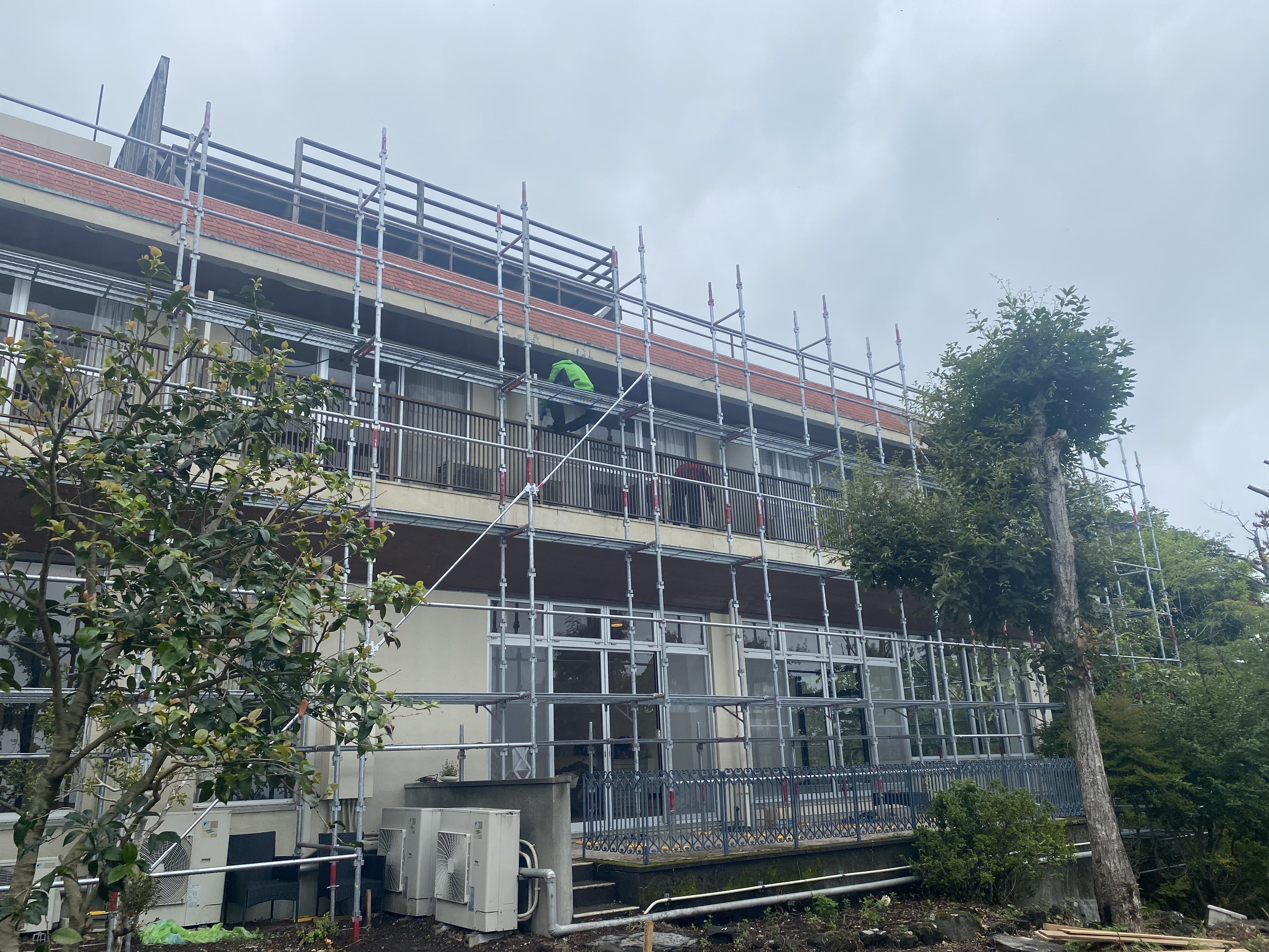 2021/08/03 17:487月半ばから、足場をかけて本格的な外壁修理を行っています。建物が巨大なため、ぐるっと一周回す足場の量もハンパではないです。手際良く足場を組んでいく職人さんたち、足場がかかり次第、早々にペンキやさんや屋根屋さんが仕事にとりかかり、連携が素晴らしいなと思いました!足場をかけての工事も終盤に入ってきて、来週には真新しい外壁と屋根がお披露目できると思います。お世辞にも綺麗とは言えなかった、リノベーション前の外壁や屋根が、新しくなって登場するのが待ち遠しいです! もっと見る