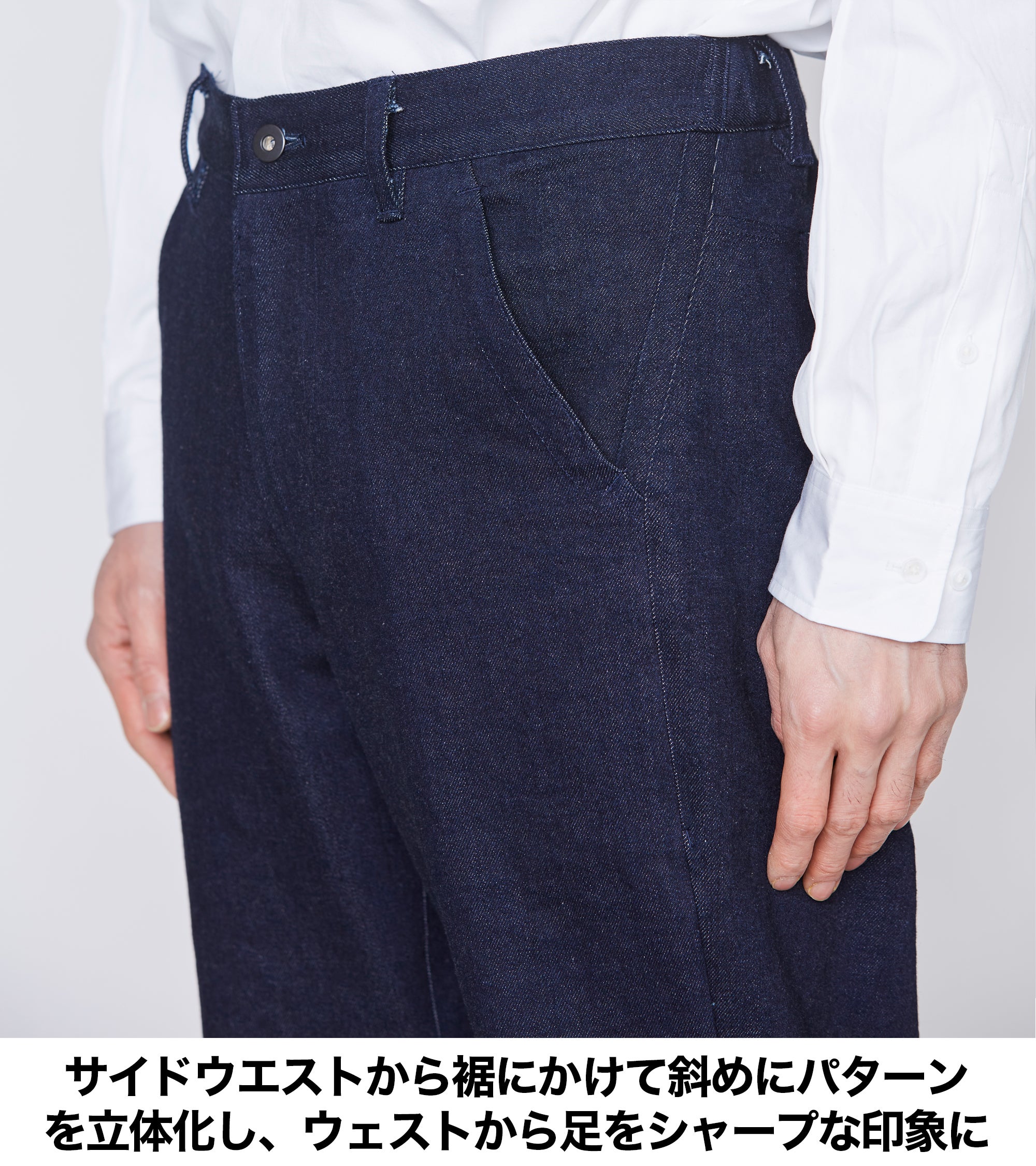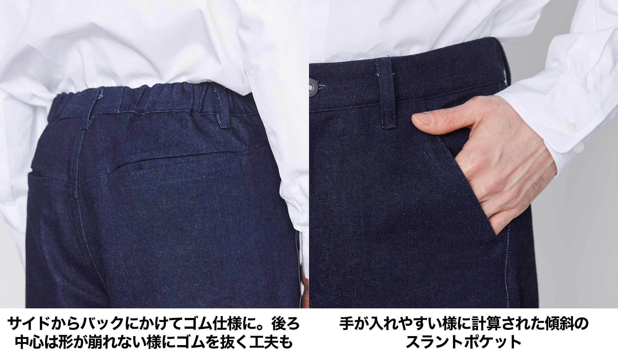 ジャストフィットするウエストとSHIN-KAI Denimの軽さが相まって、履いた瞬間に快適さを実感できます!