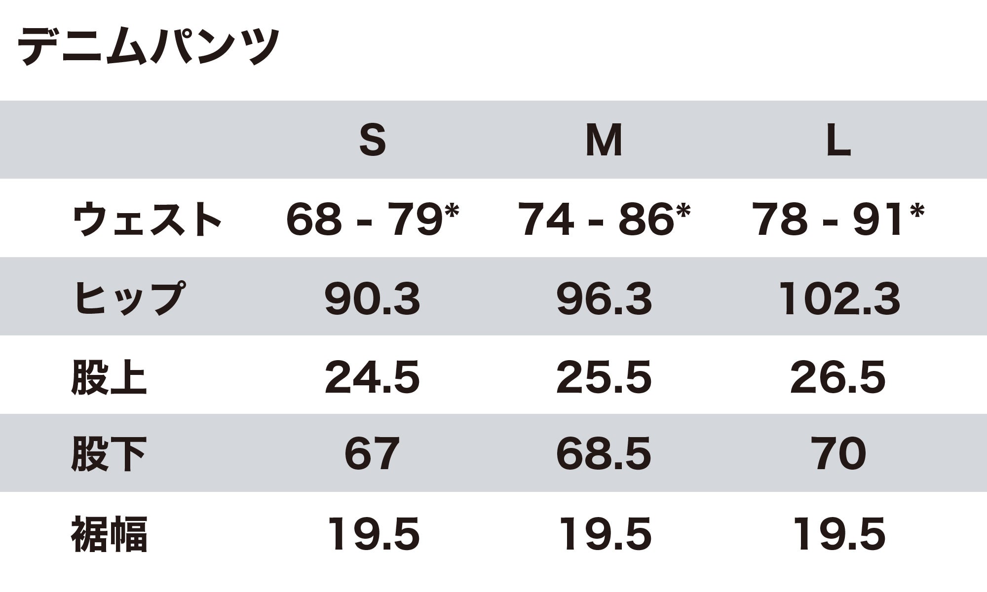 2. 股上・股下の寸法をSHIN-KAI Denimの寸法表と見比べてください。