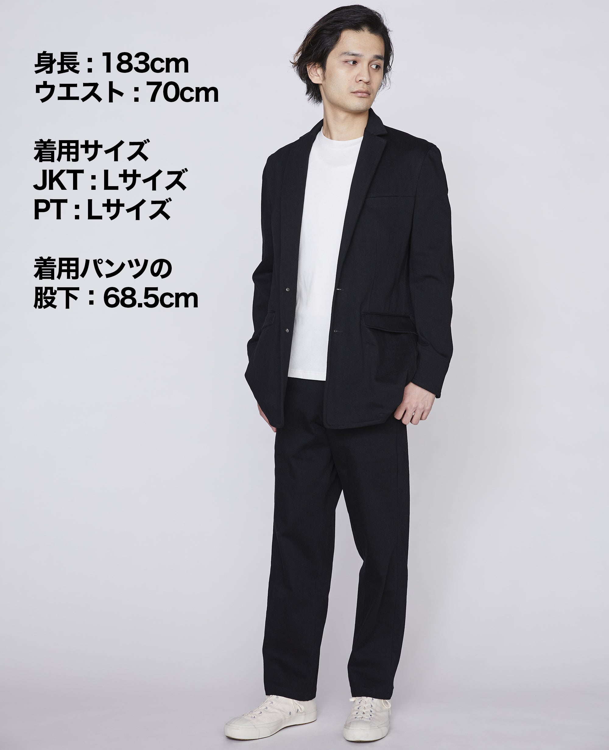 パンツはバックウエストがゴム仕様なので、長時間座っていても疲れにくく、1枚仕立てでストレッチの効いたジャケットは、羽織ったままでも快適に移動時間を過ごせます!