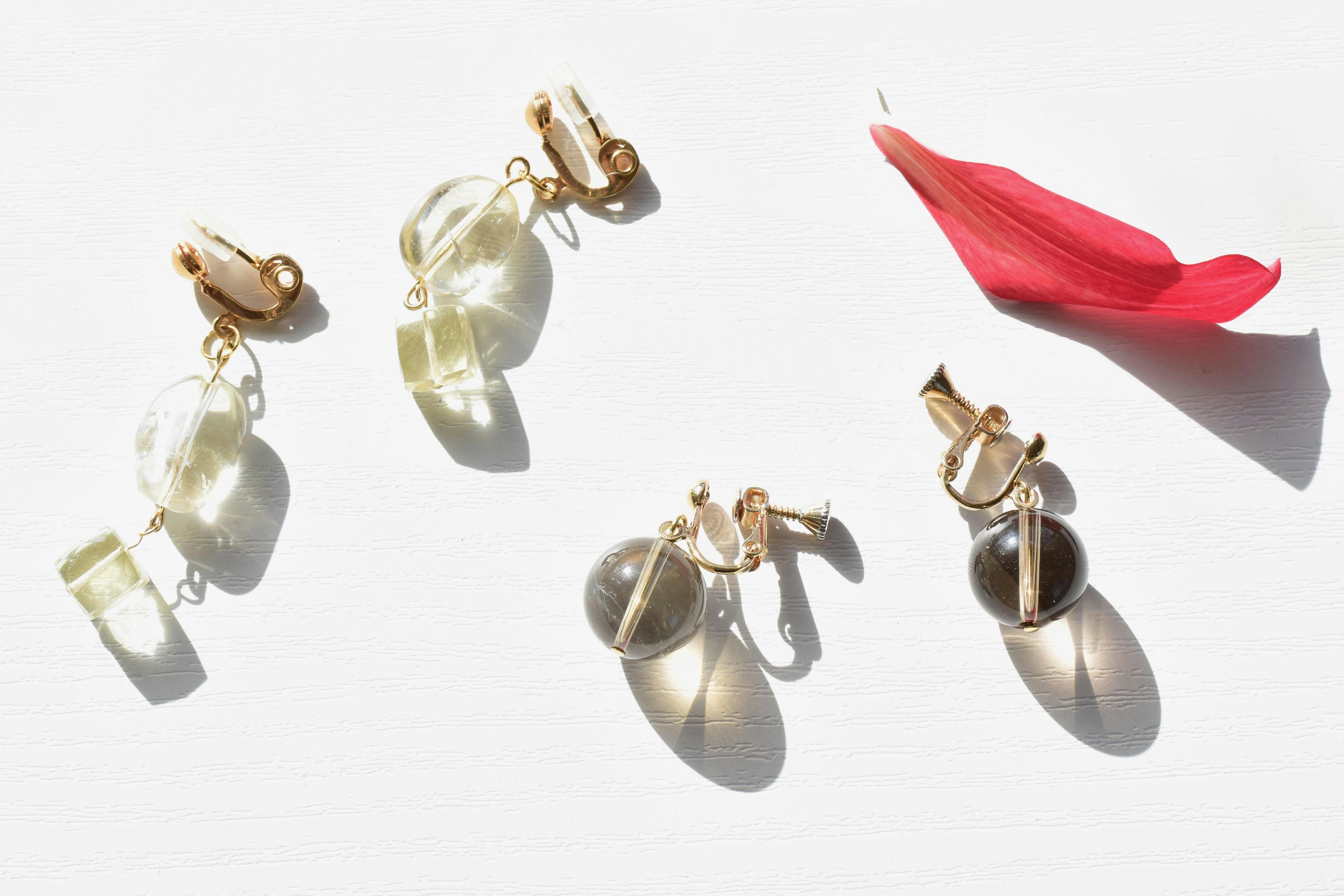 ぷるんとしたゼリーのような透明感と温かみのあるカラーのイヤリングシリーズ。