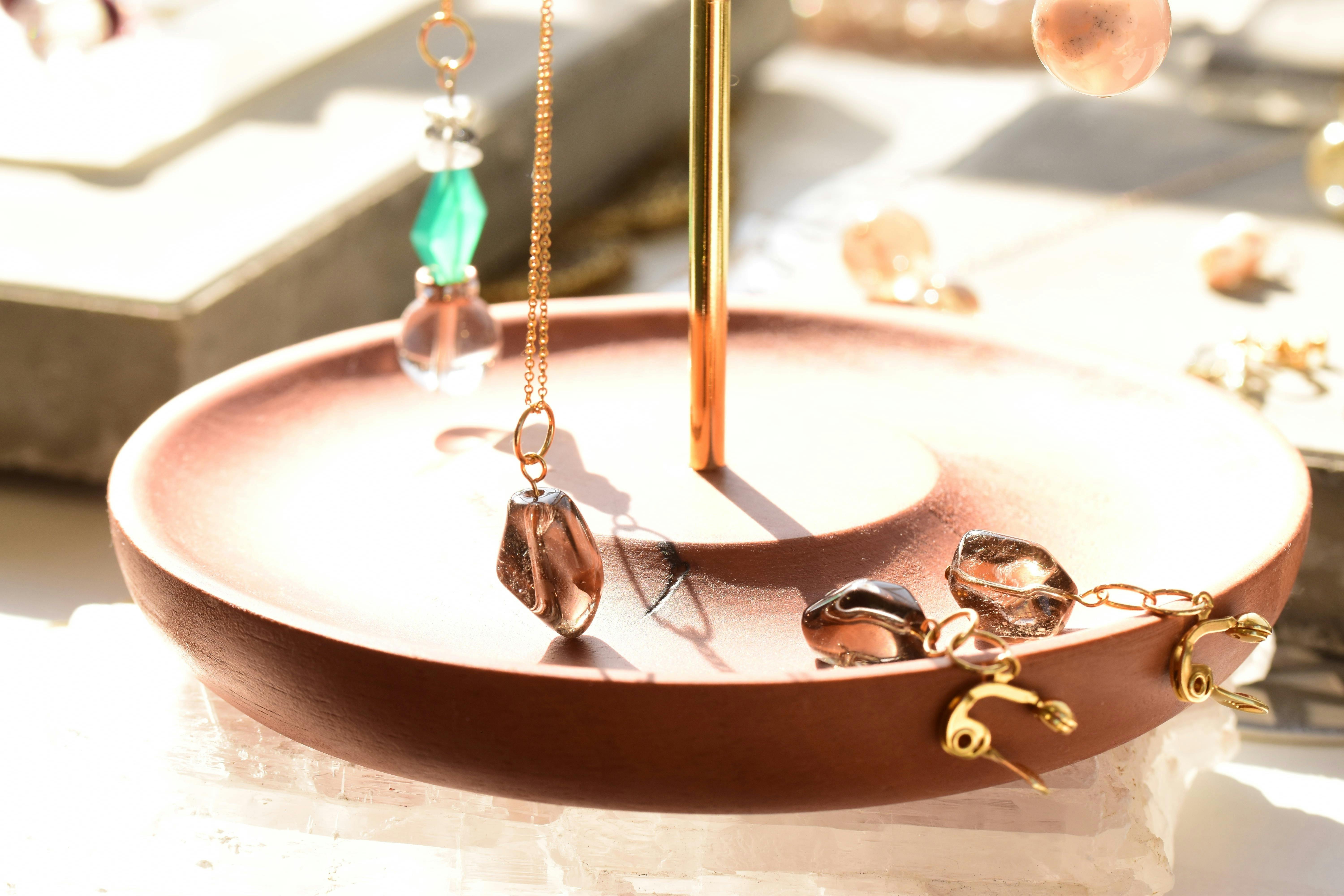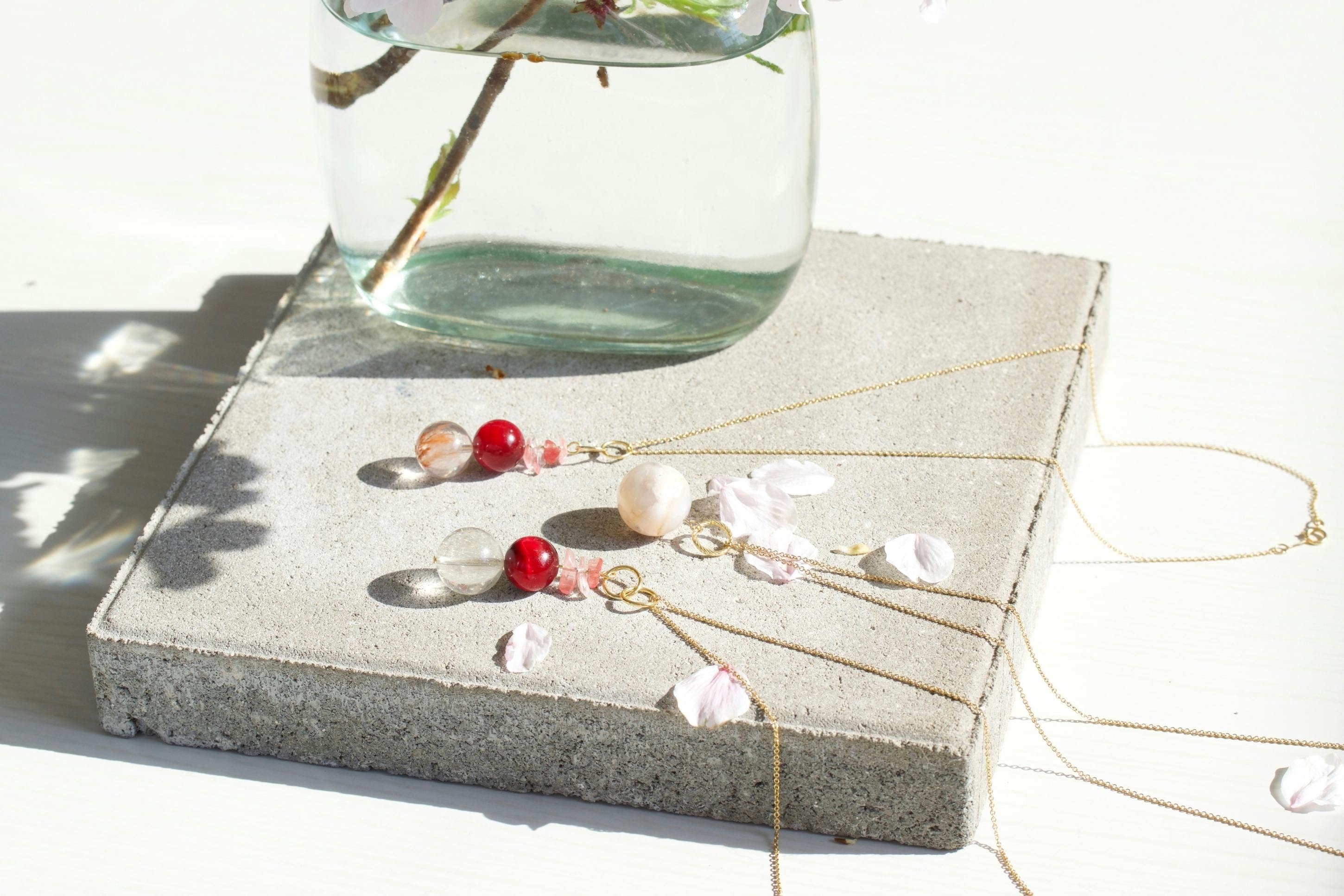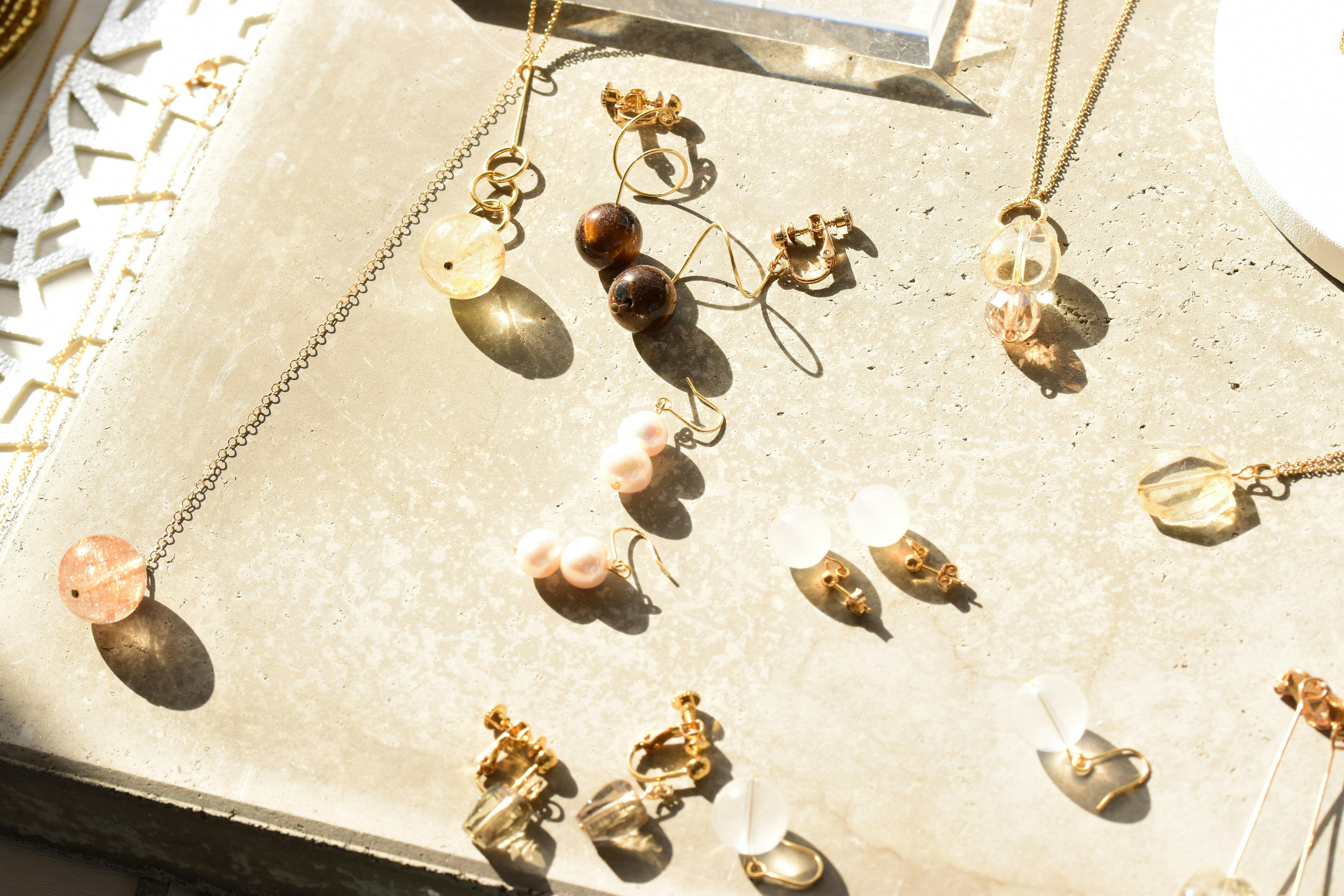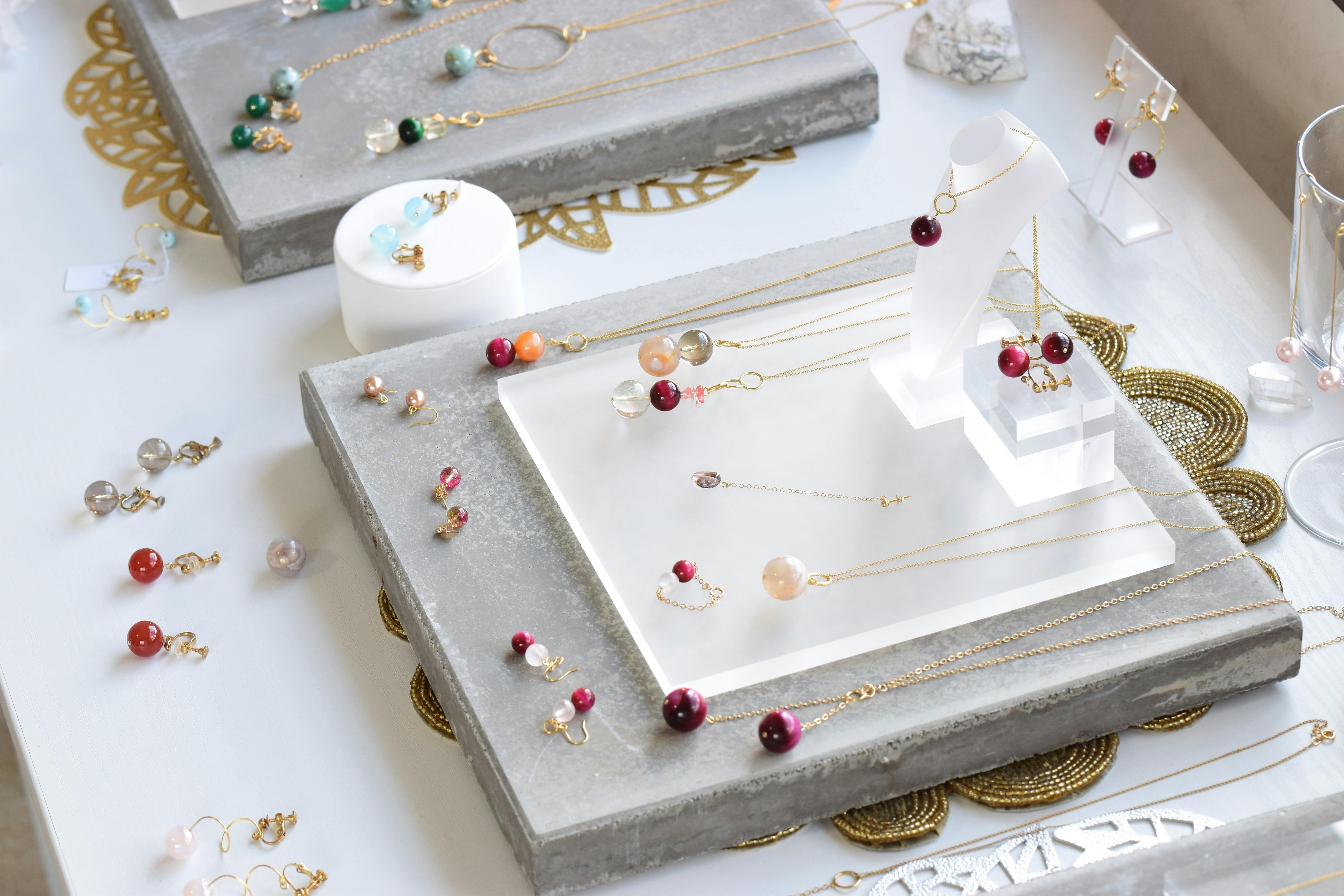 さらに、海外から直接買い付けた原石やカラーストーンを日本の山梨にあるジュエリー職人に研磨カット依頼し、デザインはオーナーSachikoが行い、金属と研磨したパーツでジュエリーに仕立てていきます。