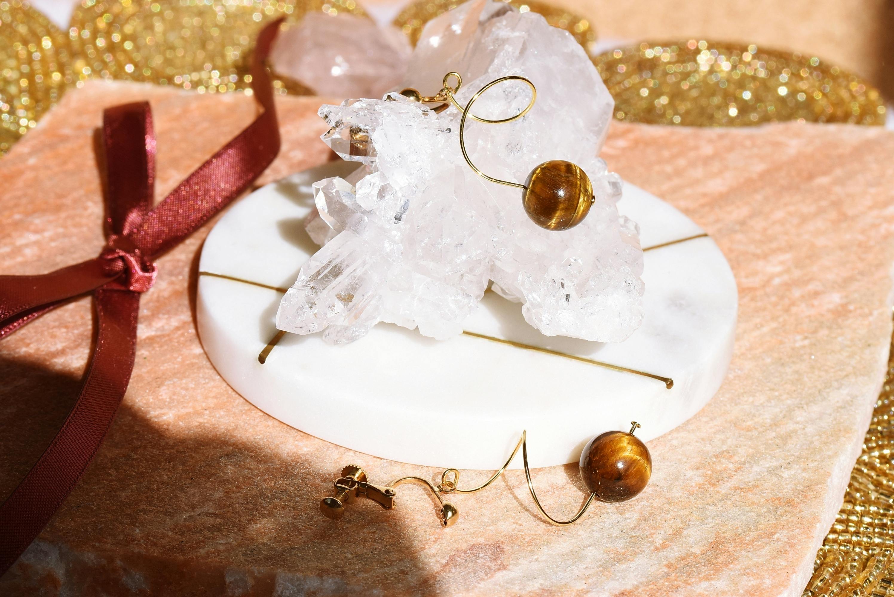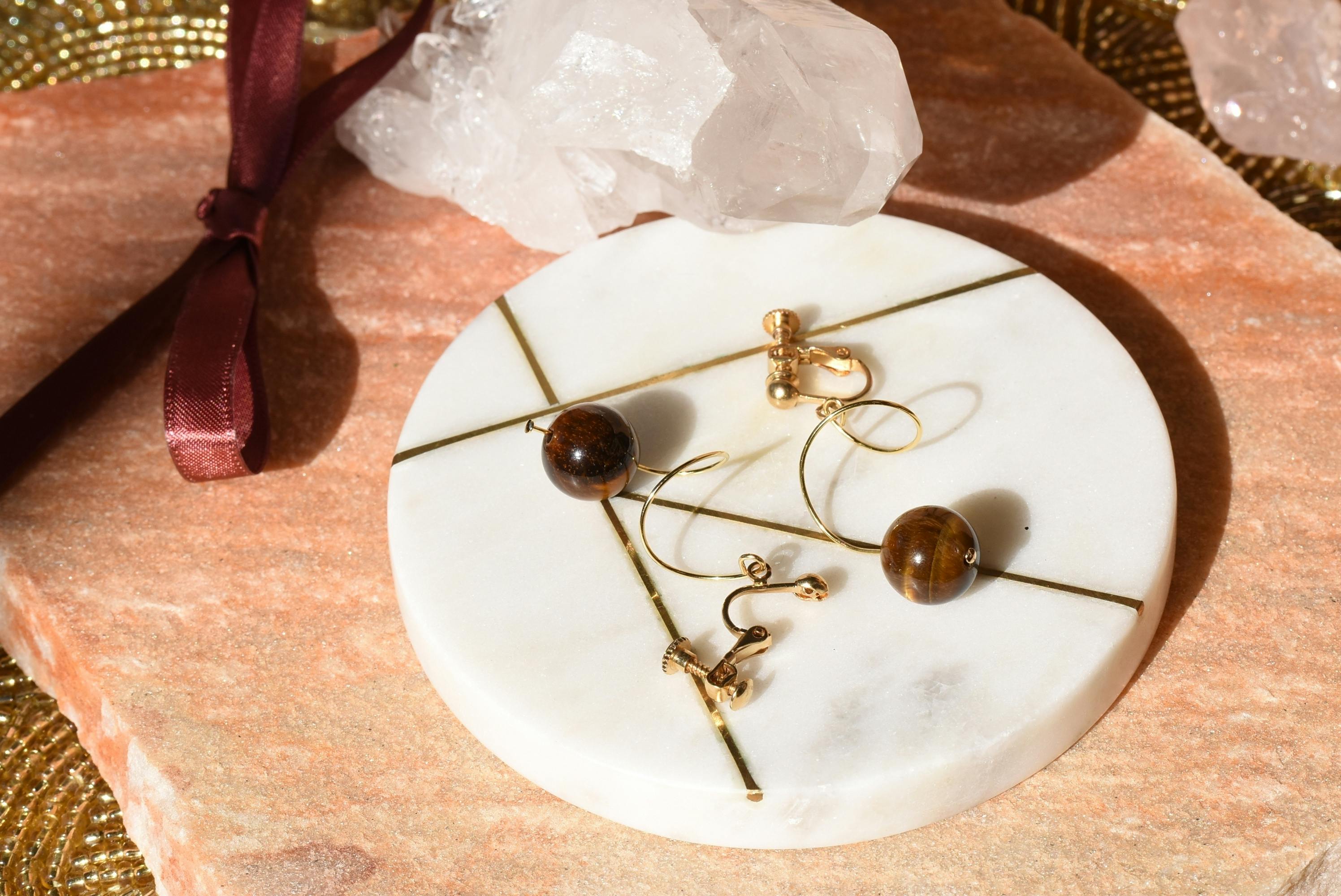 ブラウンタイガーアイのスパイラルイヤリングorピアスのみ