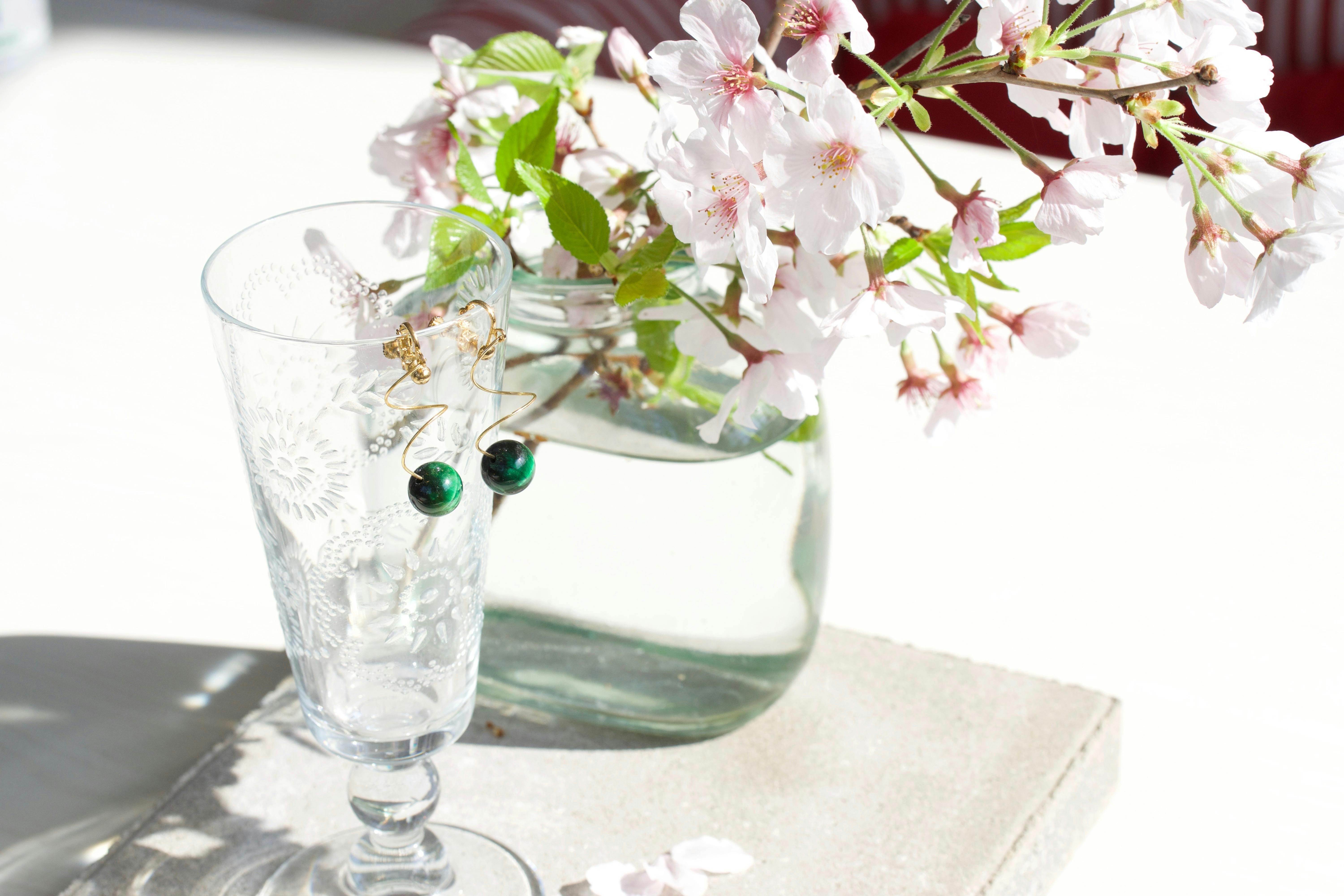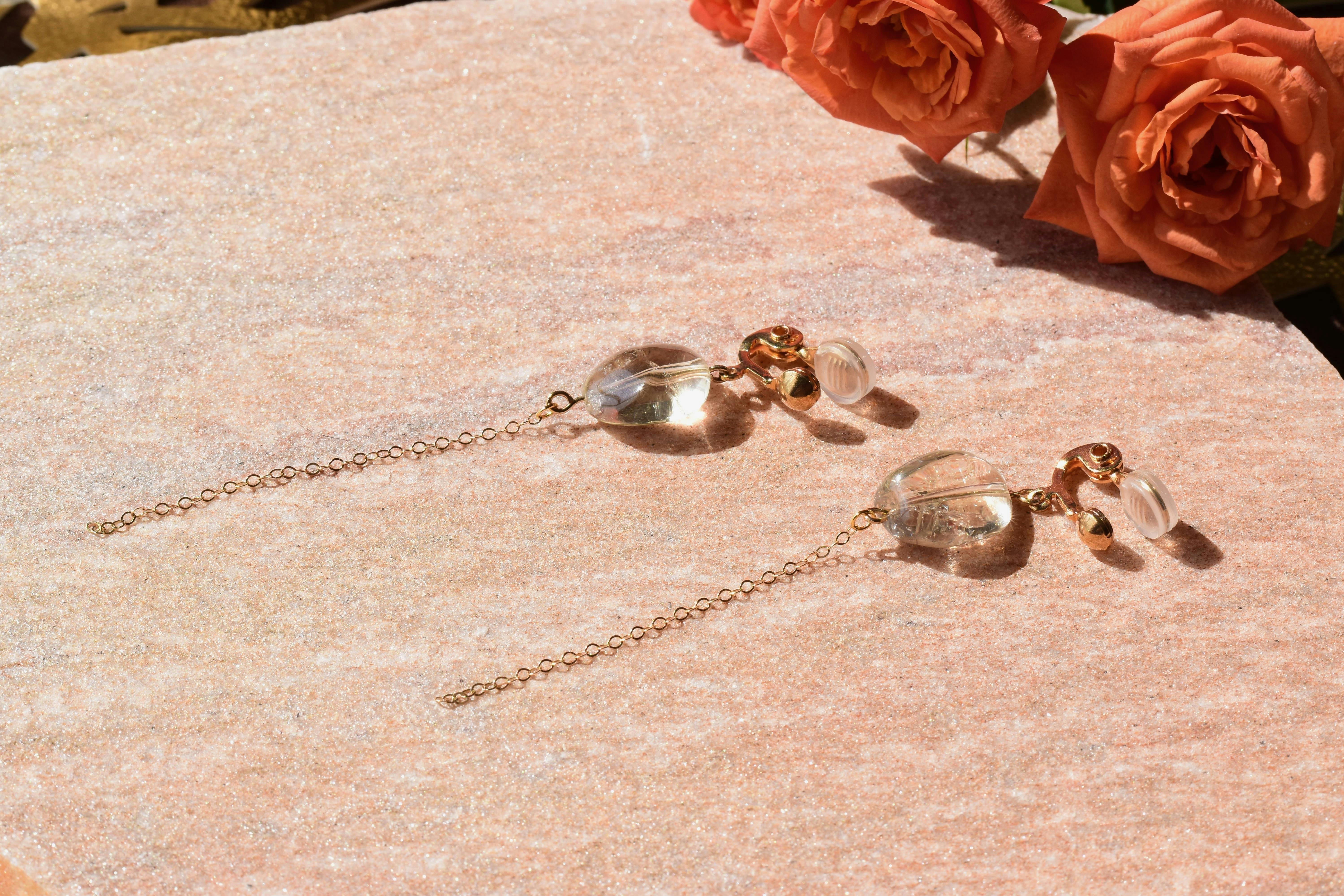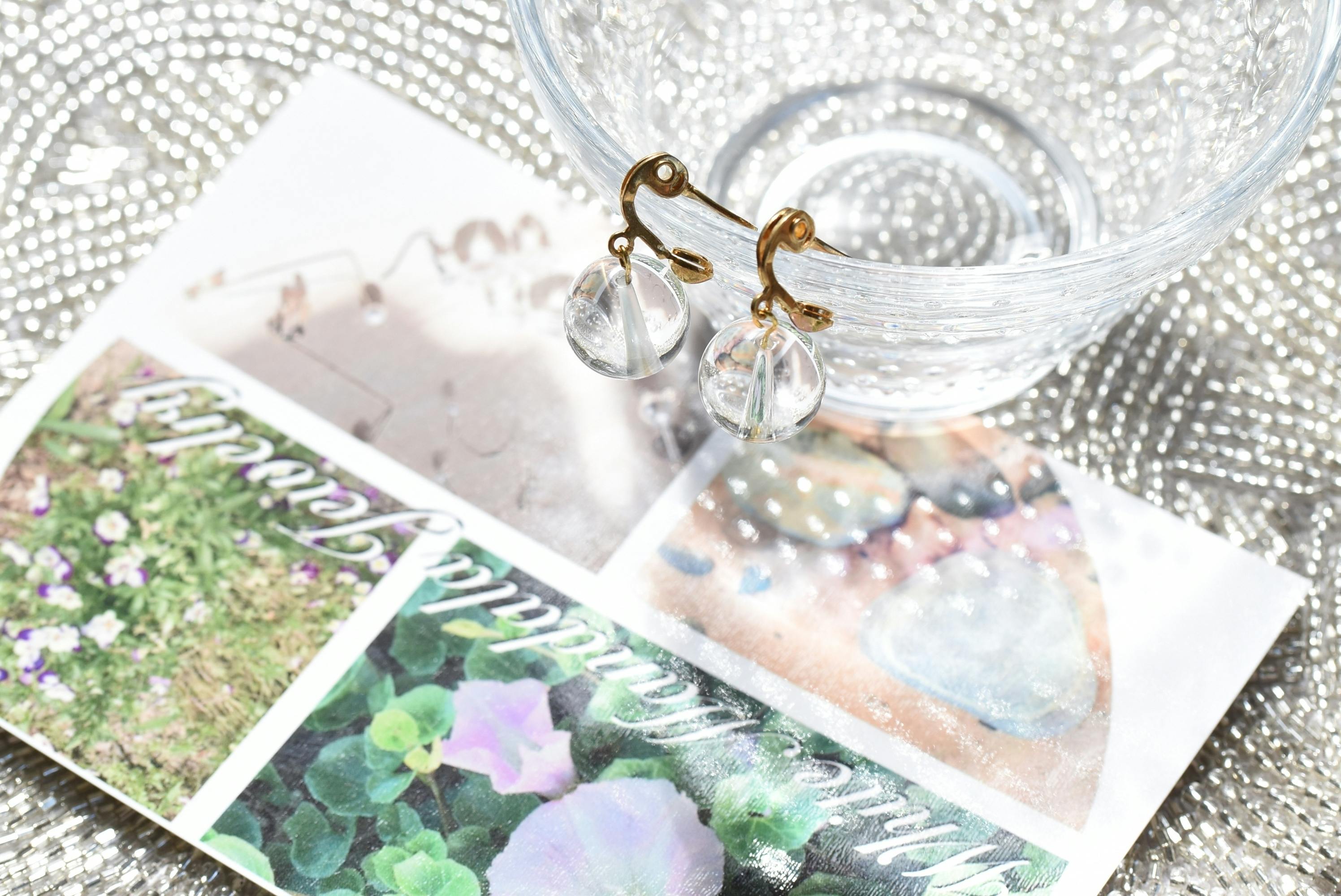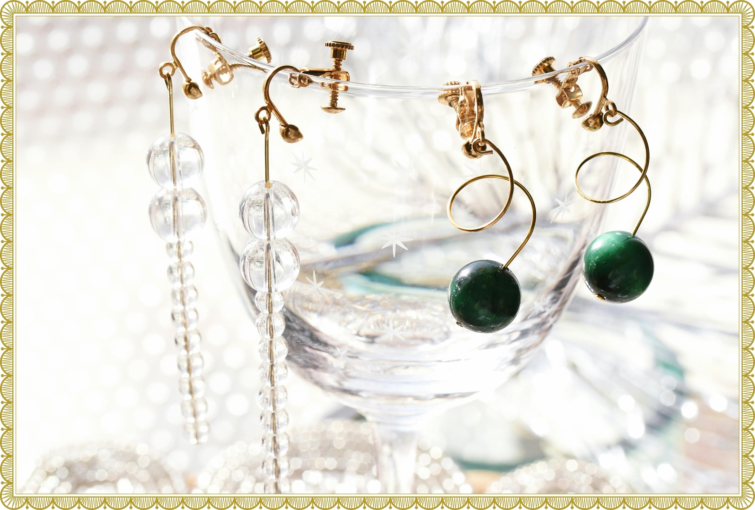 オールシーズン使用できるソーダゼリーのような水晶のイヤリング。