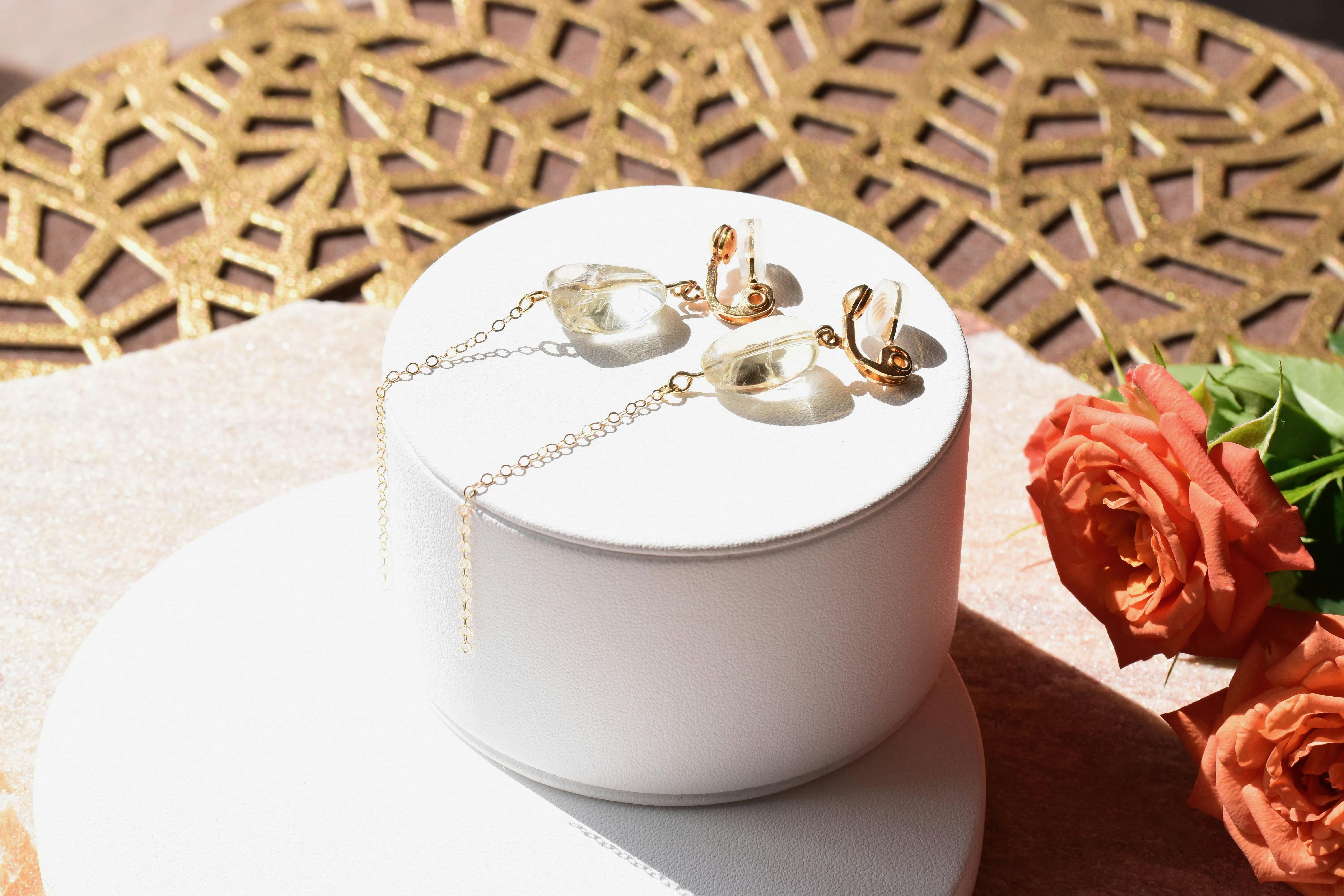 シンプルで華やかな一粒タイプのペンダントに、ふんわりくるんと揺れるスパイラルイヤリングのSet