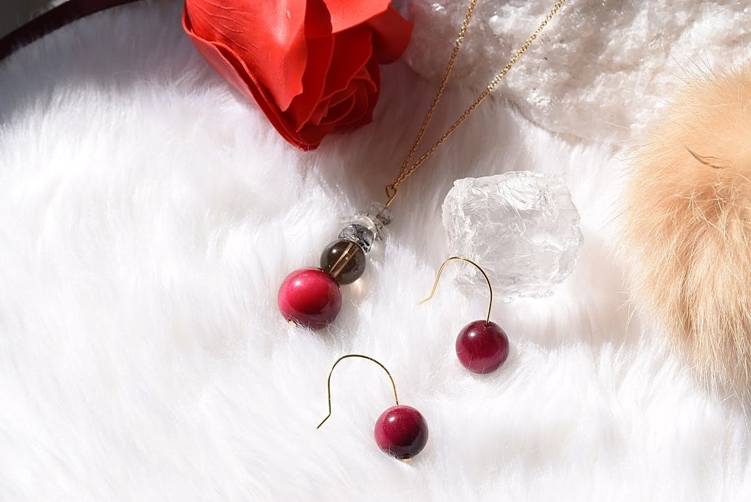 Berryのように潤った赤いマーブル模様が人気。揺れ方もとってもきれい。