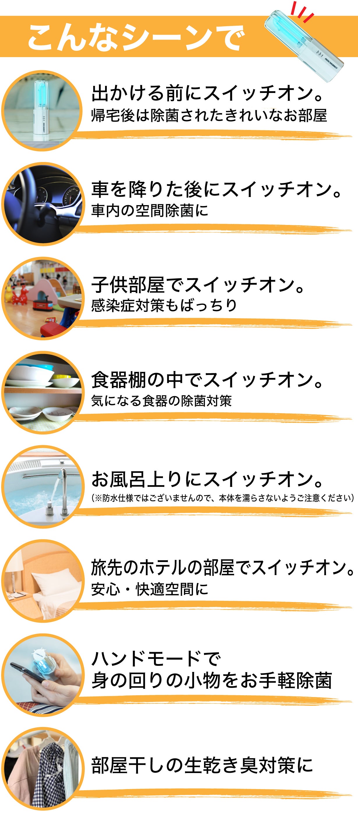 ROCKUBOTメーカーはそのUVC技術を応用し、持ち運びが便利で家庭でも簡単に使うことができる空間除菌製品を開発しました。