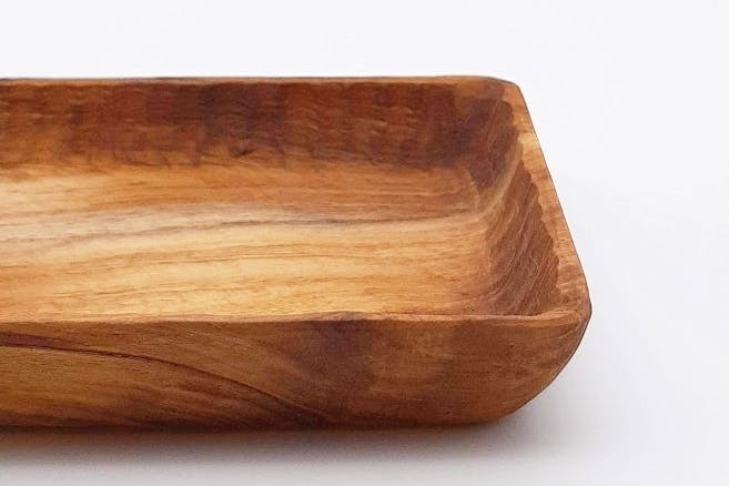 世界三大銘木チーク材を手彫りした木製テーブルウェア。油分や蝋成分を含むため、化学塗料を使わず天然のオリーブオイルだけで仕上げています。また耐久性・耐水性があるので洗剤を使ってジャブジャブ洗え、油ものもへっちゃらです。パンやスイーツはもちろんパスタや煮物などもOK!使えば使うほどチーク材ならではあじがでてくるため、経年変化が楽しめます。