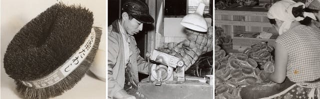 遡ると、アイセンの創業は、1946年(昭和21年)。愛染の商標でたわし・ほうきを製造したのが始まりです。アイセンたわしは高級品のイメージを浸透させ、常に新しい価値をつくることを目指し、新たな素材開発や、使いやすい機能を追求すると共に、安心で安全なモノづくりを行ってまいりました。