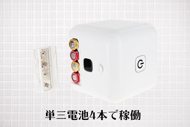 単三電池4本で動きますので、SHAMDiはどんなご家庭のバスルームも簡単に設置可能です。(電池は別売りです。)