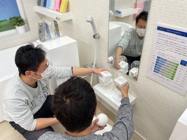 開発にあたっては、誰しもにとって使いやすい形状・操作方法・安全性、そしてちょっとしたお風呂タイムを楽しくするようなちょっとしたかわいらしさなどを担当者内で何度も議論してきました。