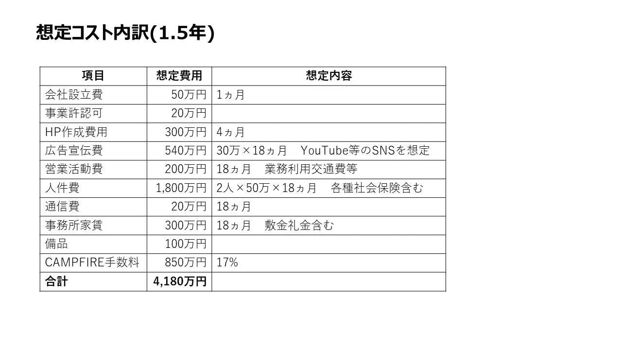 ※具体的なリターン内容に関しては、別途リターンのページを参照ください