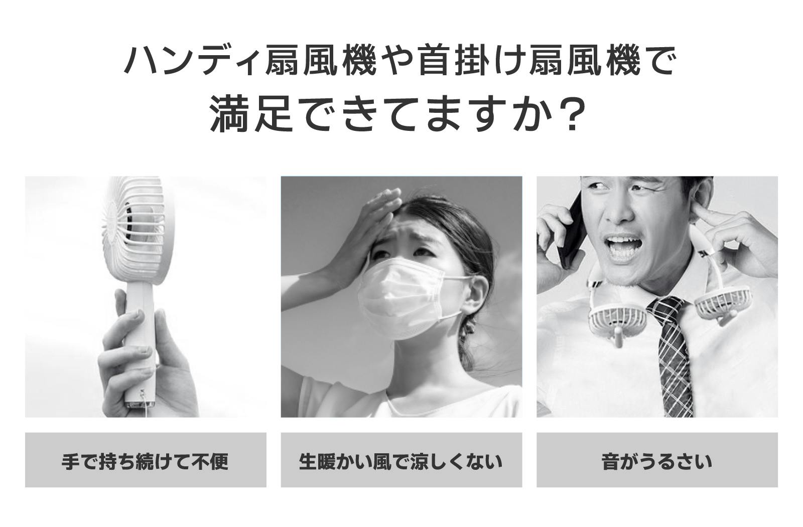 一昔前は夏にクーラー、冬はヒーターと使い分けされていたのが 大手メーカーの努力によりエアコンが開発されて年中対応できるようになりました。 今人気の首掛け扇風機やネッククーラーも、年中対応できるよう進化させるべきとの思いから、 メーカーと開発することとなりました。