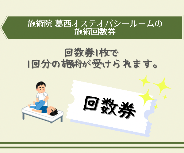 結果として¥6140割引きとなり大変お得です。(施術時間は初回90分前後、2回目以降50分前後。時間はあくまで目安です。回数券に利用期限はありません。)