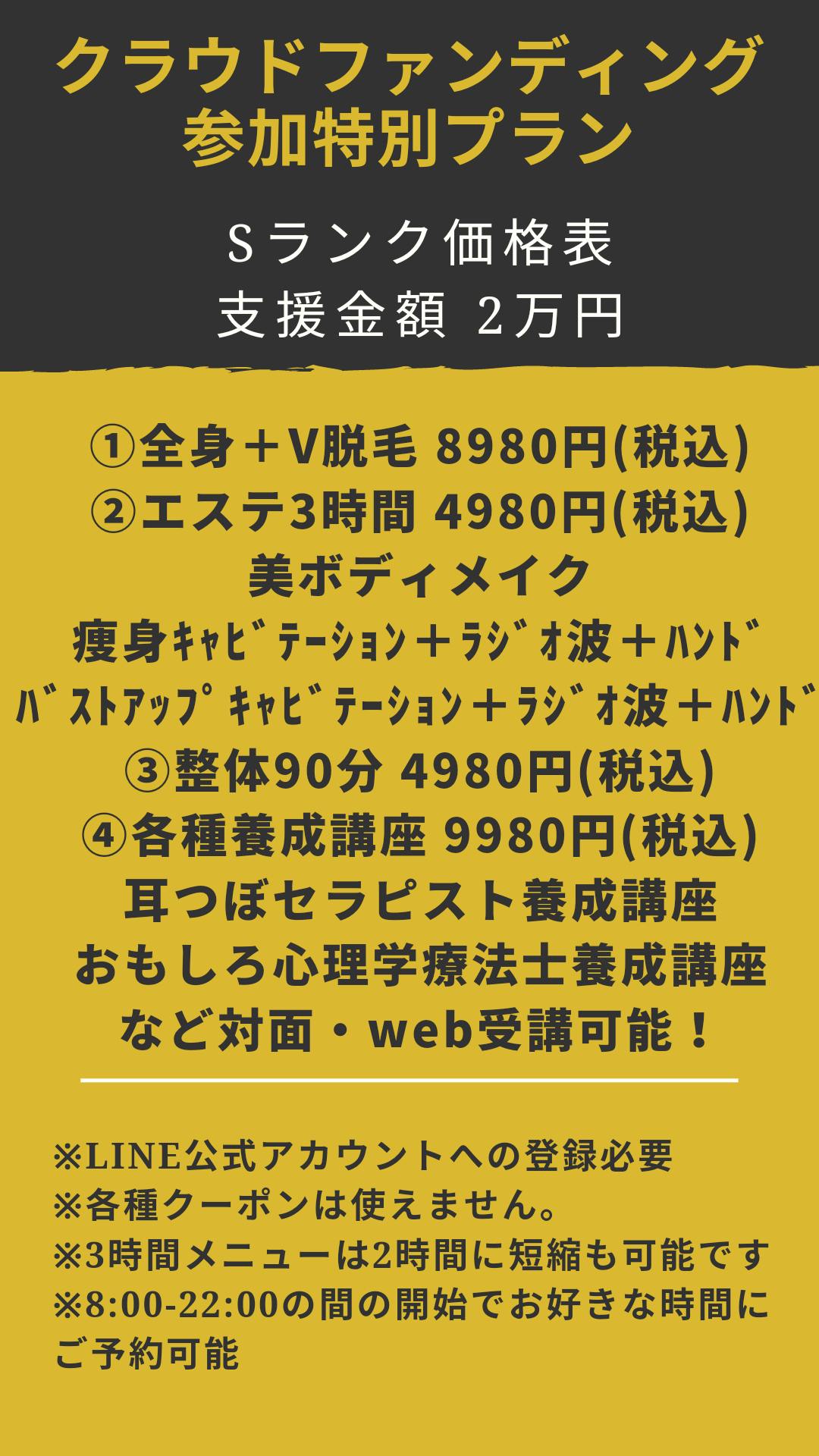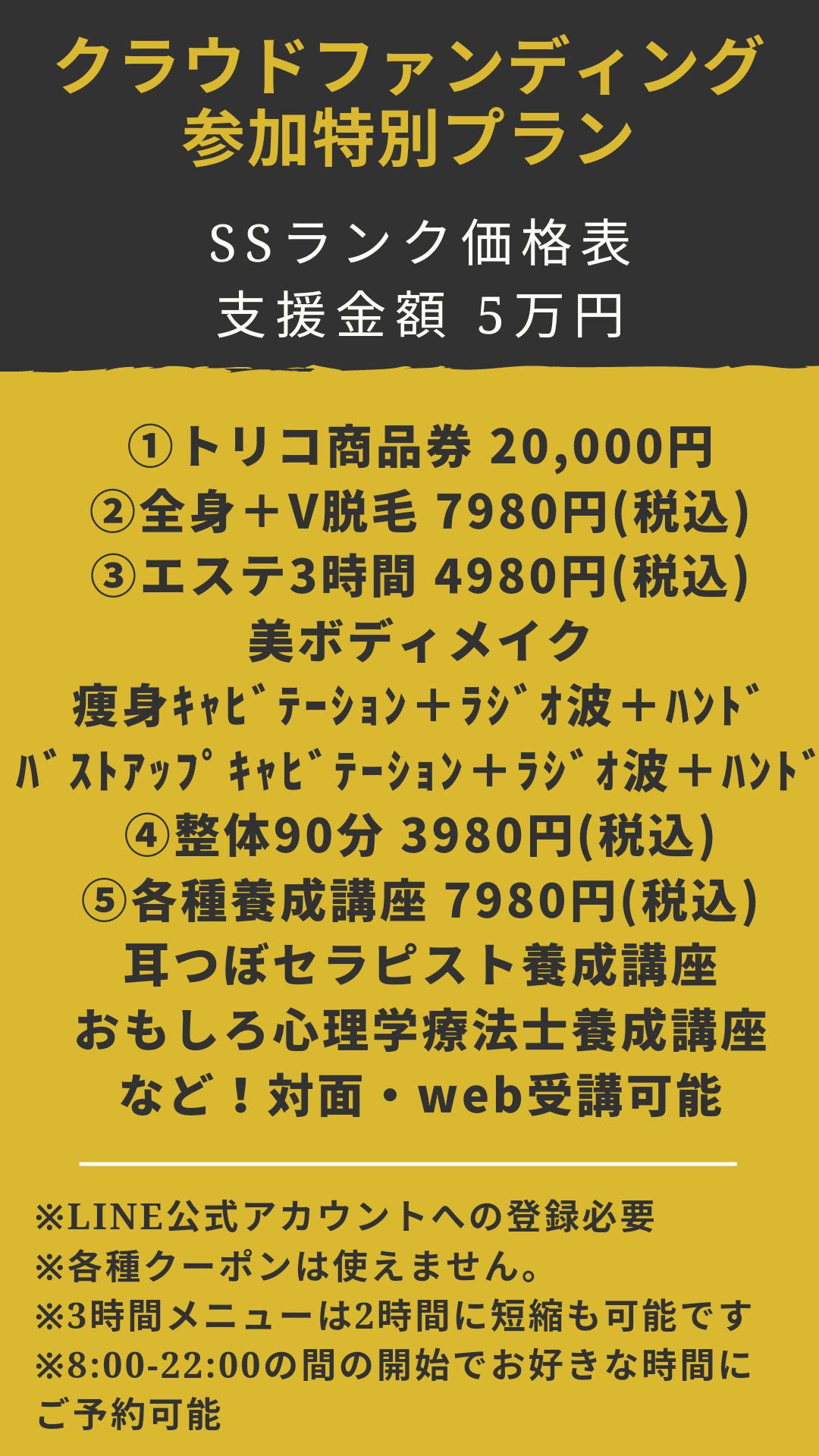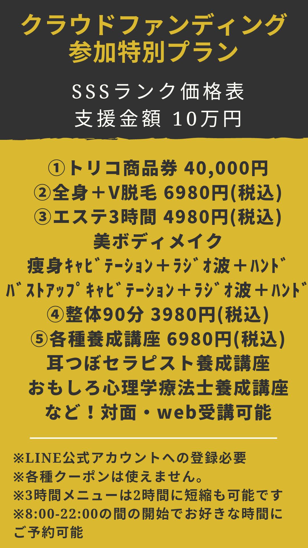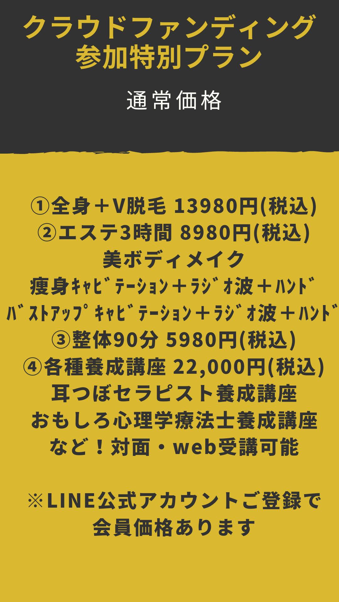 サロンのお客さまから、全身脱毛は高額でわかりづらい金額表示だと教えられました。よくあるパターンの月額も、ローンを3年で組んだ時の毎月の支払い金額を表示していて、実際の1回の金額とは違い高額になると教わりました。また、安いサロンは予約が取れないとのことで困ってらっしゃいました。ローンとなれば複数回の契約となり、辞め時もわかりにくいので、当店ではクラウドファンディングにご参加の方を優先でご予約をお取りすることと、明瞭会計にするため格安の都度払いで行います。当サロンは貧困家庭においても通えるサロンを目指して立ち上げた経緯がありますので、スタッフにもお給料を出しながら、営業できるギリギリの価格を実現し、お客様には豊かで余裕のある生活を楽しんでもらいたいと思い取り組んでいます。