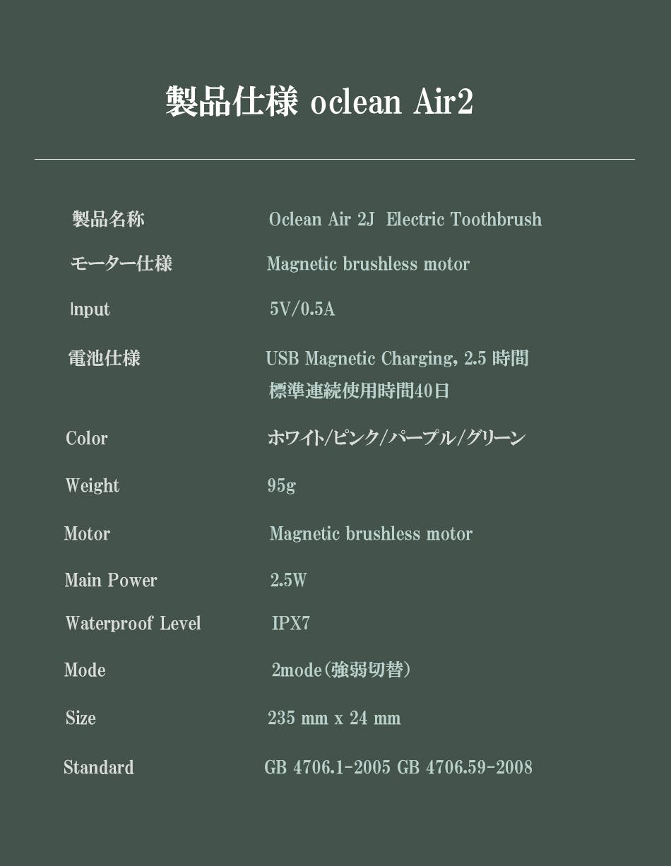 エントリーモデルとして十分な性能と美しさを併せ持つAir2で毎日のオーラルケアを彩ります。