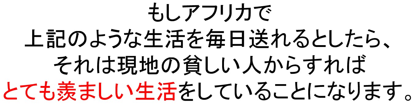 あなたは毎日、自分の家の床の上で寝れますか?汚いし硬いから寝たくないですか?毎日ぬるい水道水しか飲めない生活はどうでしょう?味が無いし冷たくないから嫌ですか?毎日冷たいシャワーを浴びるのは嫌ですか?使い古したボールだけで1年間遊び続けられますか?