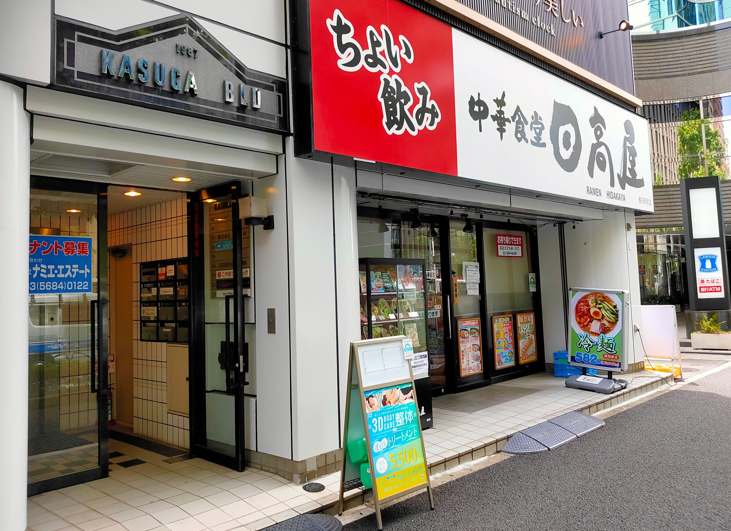 また、隣にローソン、通りにはマクドナルド、同ビル1階のテナントには日高屋さんがあります。
