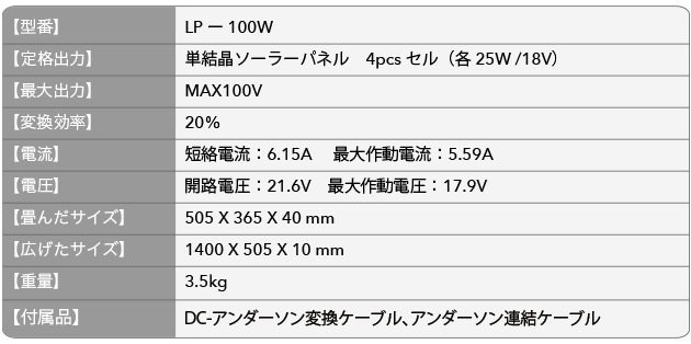 同時販売のソーラーパネルはコンパクトなサイズで手軽に持ち運べて、保管に場所を取りません。