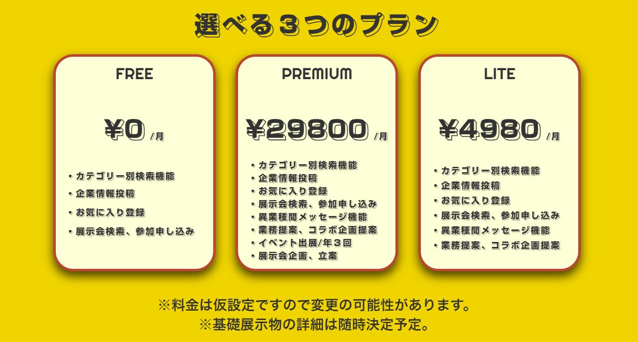 まずは登録者限定のコミュニティサイトの作成を行い、サービスの提供を開始します。(ライトプラン会員費=4980円)約半年後から1年後を目標にサブスクリプション型展示会の運営を開始します。