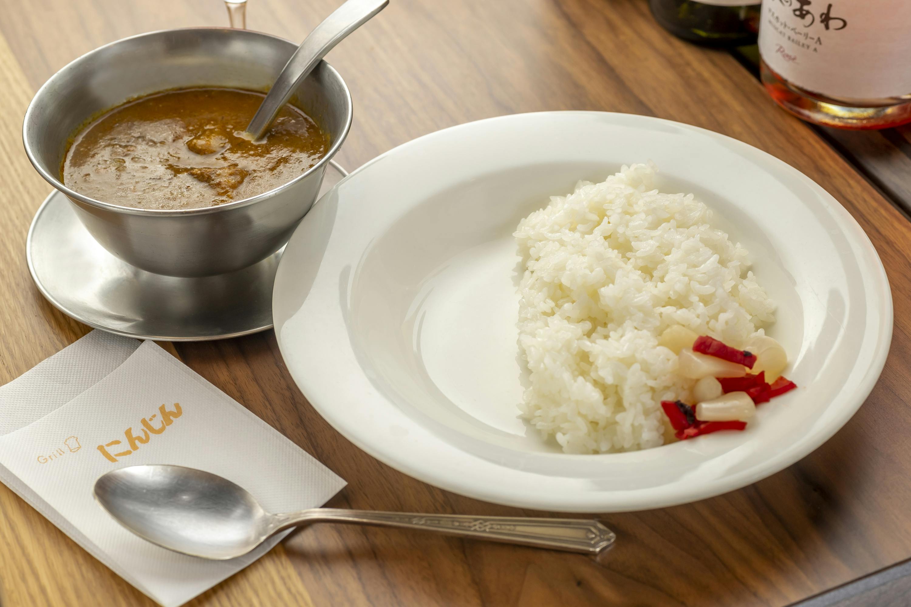 2023/06/18 16:40お客様のご来店ありがとうございます!京都の米老舗・八代目儀兵衛さんとつくる「洋食のための白米」↓https://camp-fire.jp/projects/view/667209?utm_campaign=cp_po_share_c_msg_mypage_projects_show洋食の濃いソースとご飯との相性を最優先に考えた、グリルにんじん専用の洋食米。今の季節は、にこまるというお米を中心に、2種類の国産米がブレンドされた逸品です。 お料理と一緒にあわせるのもよし、当店の特製カレーにもぴったりです。当店のカレーなのですが仕込みがこれまた大変でして①出汁用野菜を用意する にんじん1本、玉ねぎ3個、セロリ3本、ローリエ1枚、パセリの軸20g②玉ねぎ3個 をイチョウ型にスライス、 皮をむいた人参2本 にんにく2つかみ しょうが2袋(200g)を洗って 土落としたものをまとめてフードプロセッサーにかける(②)③じゃがいも約10個 皮をむいたにんじん1本 セロリ6本 たまねぎ2個 をミキサーにかける④筋3kgを炒めて、寸胴に入れる。水は、2つの突起の下の突起まで入れる。 沸騰させた後に 灰汁を取り、①の野菜投入し、約3時間煮込む ・・・とあと⑫工程位当店の仕込みマニュアルに記載されておりますが次の目標は こういう工程なども載せながら日本伝統の洋食文化を知ってもらうために 英訳した洋食本として出版したい次第です。 ぜひ一度ご賞味下さいませ! もっと見る