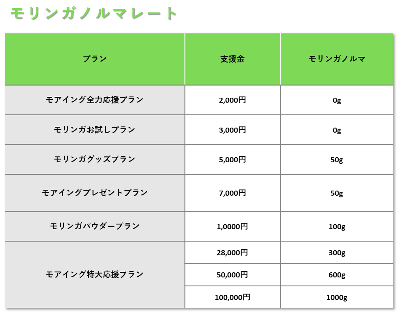 ※こちらのモリンガノルマは、モアイングが責任を持って今後の商品開発等に使用するモリンガパウダーであり、リターンには含まれておりません。ご了承ください。