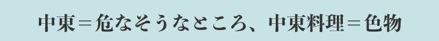 フレンチやイタリアンや中華は私たちの日々の食事の選択肢として普通に存在しているのに、「中東料理」といえばマニア向けの色物的存在、というのが現状だと思います。