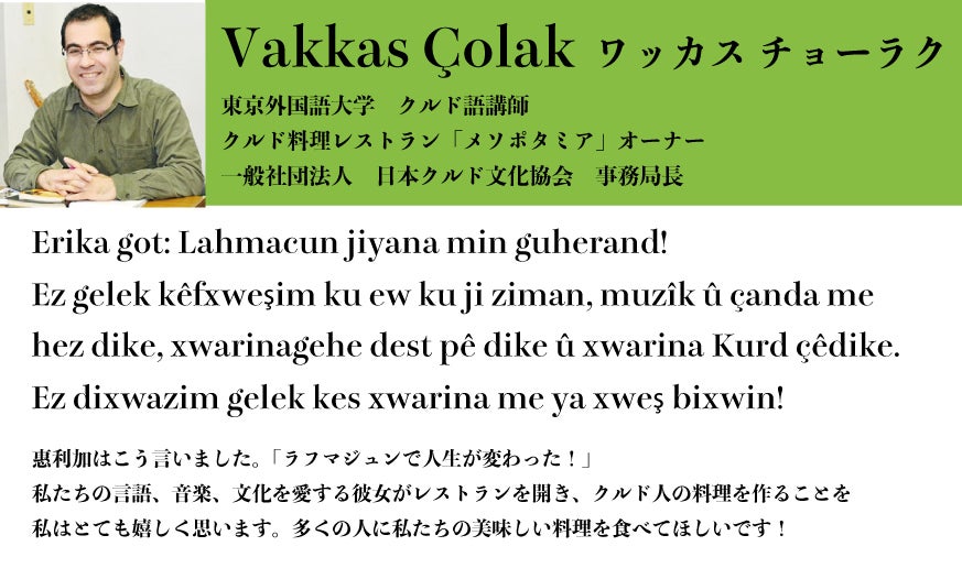 私にとってラフマジュンは、クルド人との温かい繋がりを象徴する大切な料理です。
