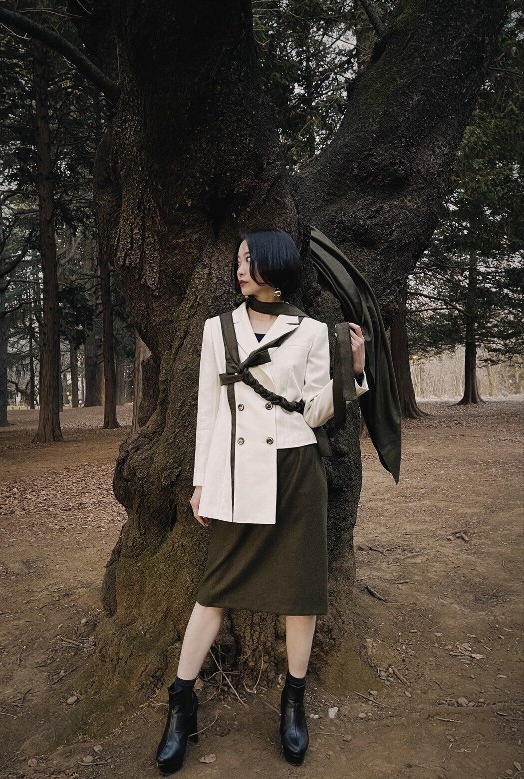 代々木公園の木からインスピレーションを受け制作されたジャケット・スカート。