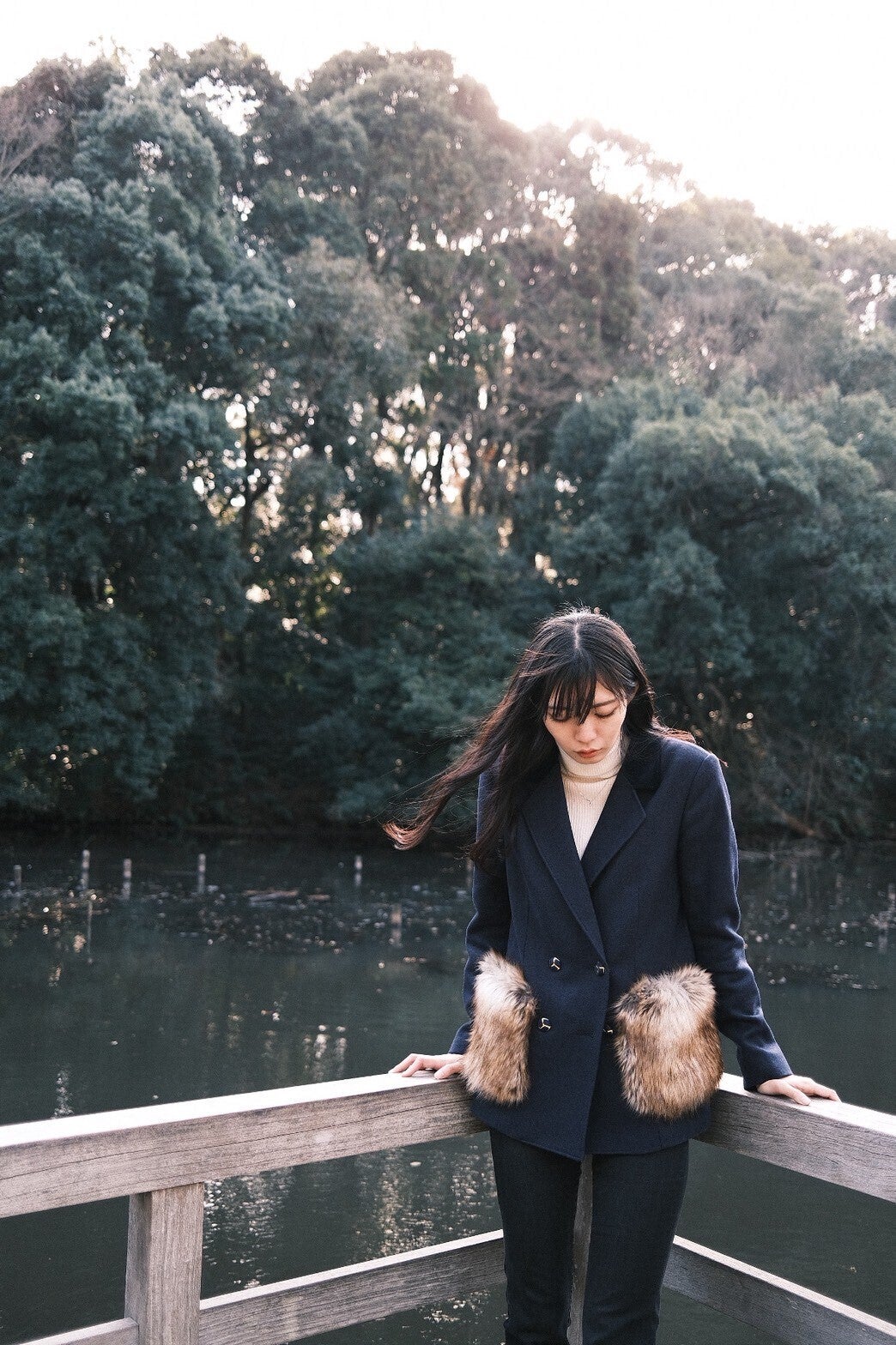 どこか懐かしさを感じるジャケットを表現するため、ポケットをファーにし、ボタンもレトロな風合いのモノを使用した。毛足の長いファーを縫うことに苦労したが、均一な毛の出具合になるよう調節している。