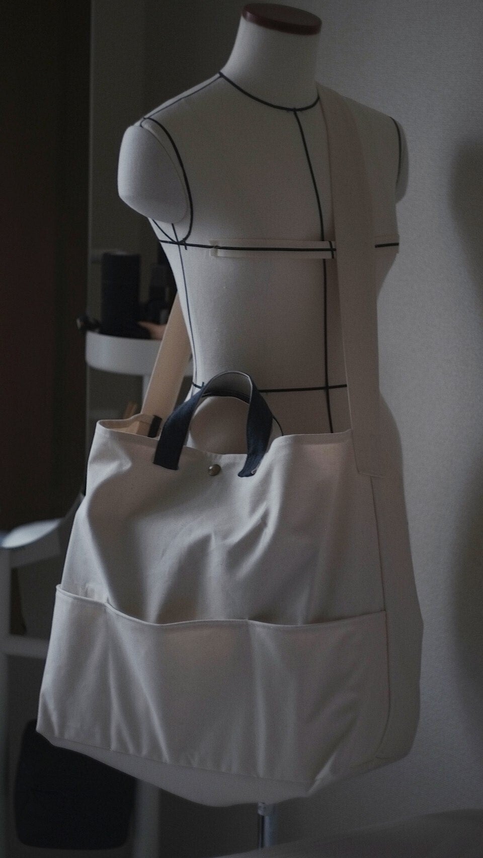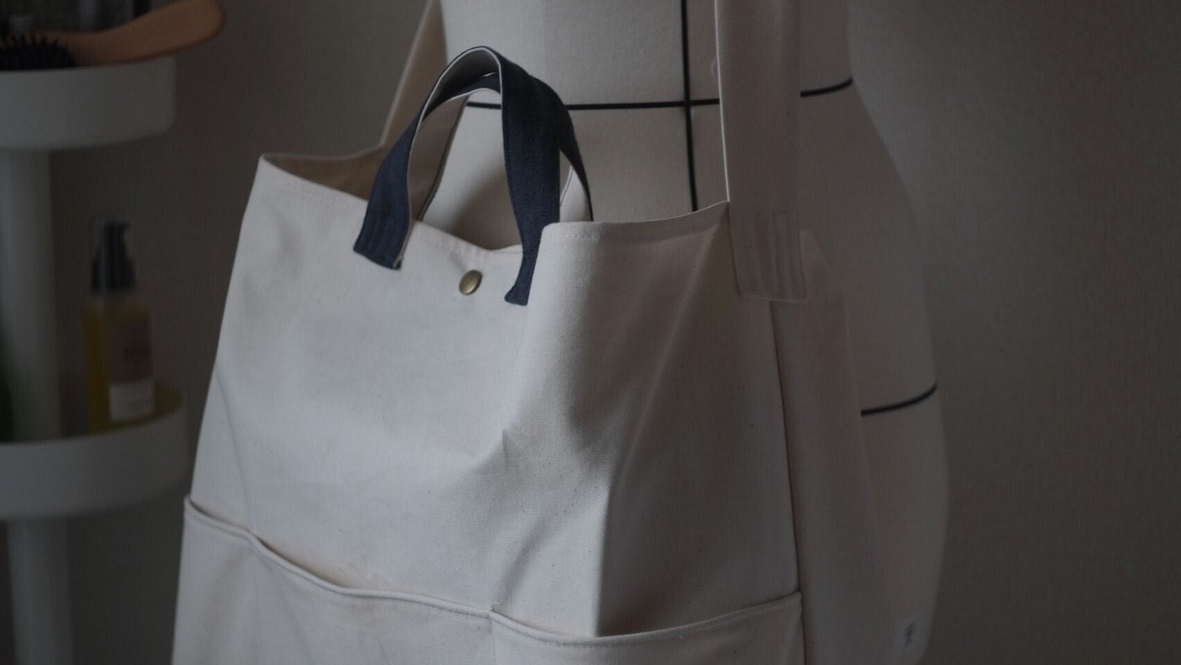 A3サイズの書籍が収まる大容量のバッグ。トートバッグとしてもショルダーバッグとしてもお使いいただけます。外側、内側両方にポケットが付き、マチもたっぷりとっているので、非常に使い勝手の良いデザインになっております。