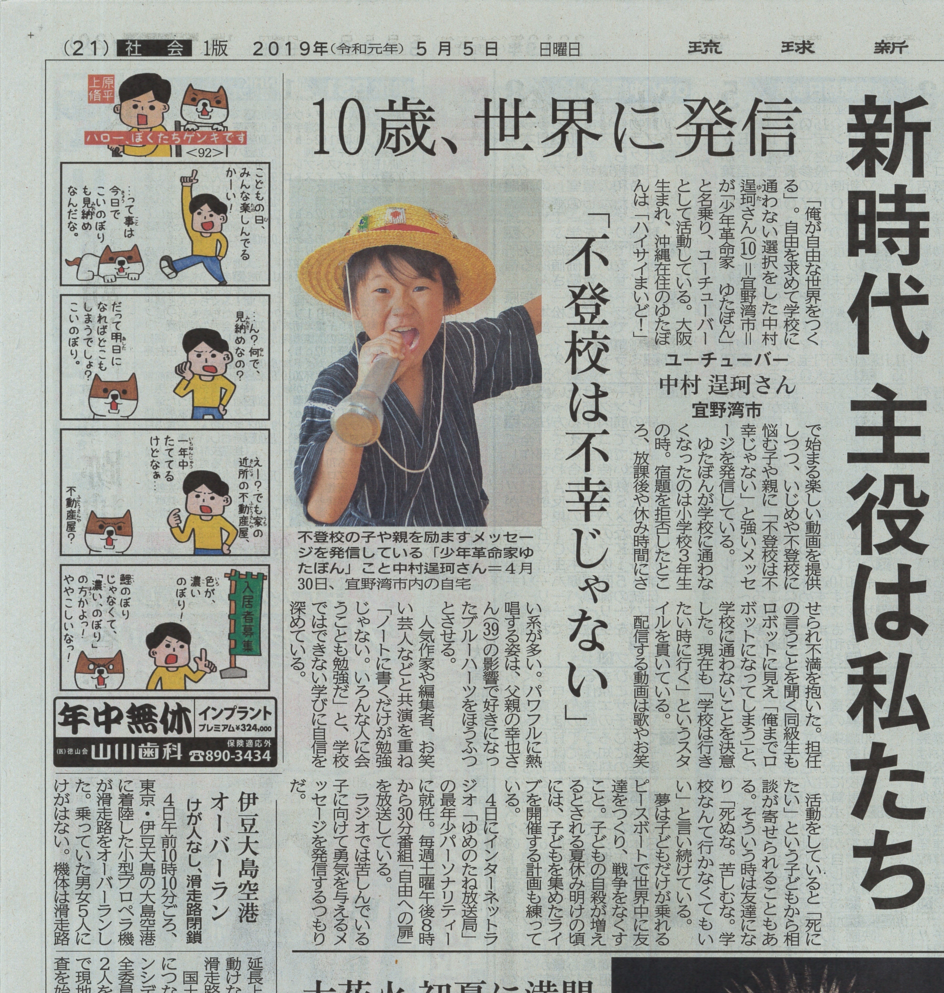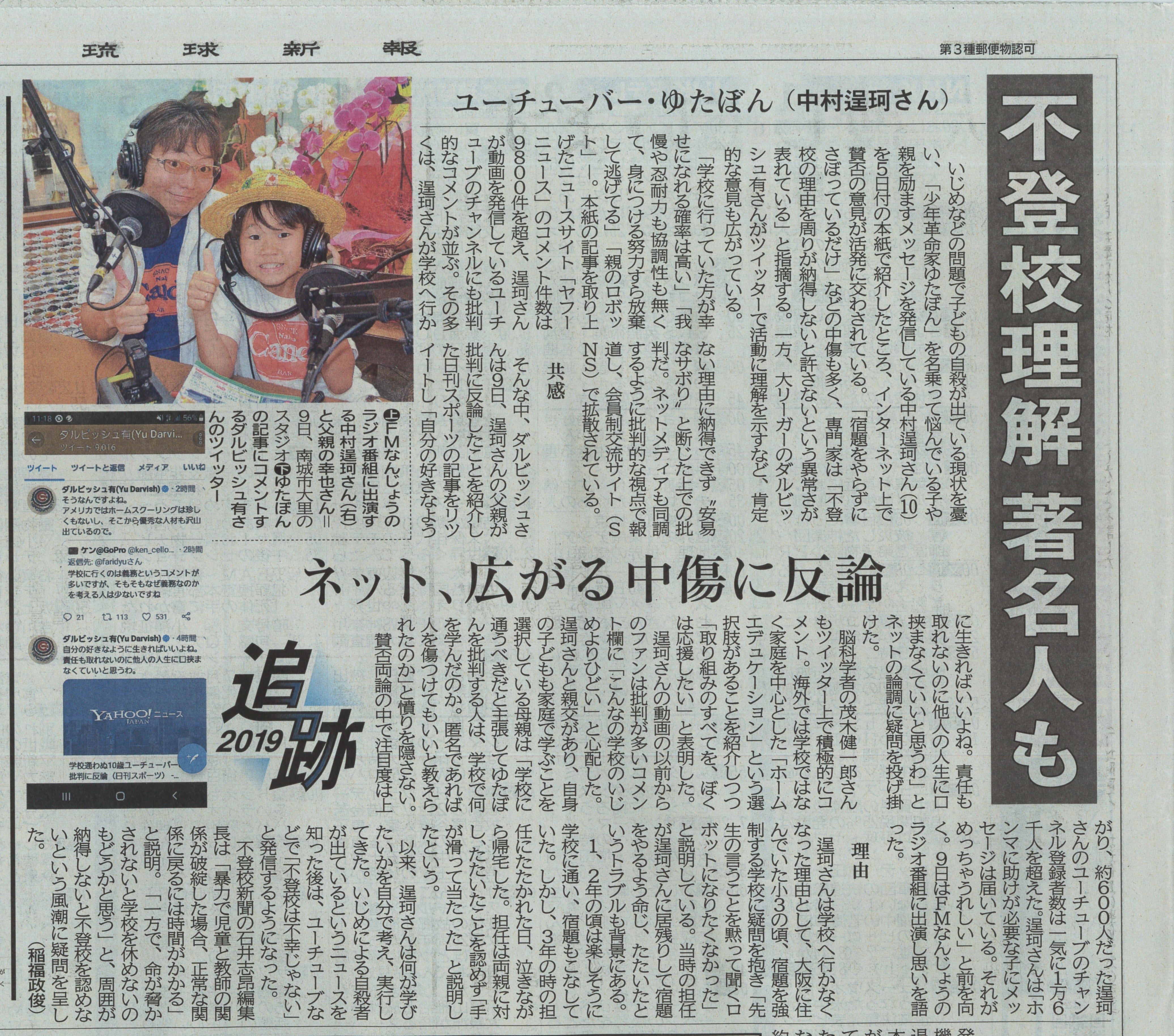 ネット上で親が新聞社に売り込んだというデマが拡散されたり、誹謗中傷してくる人もいましたが、擁護してくれる人や応援してくれる人もたくさんいて、僕はそれからもYouTubeとラジオで発信し続けて、再び琉球新報に掲載されました。
