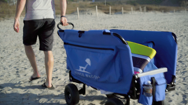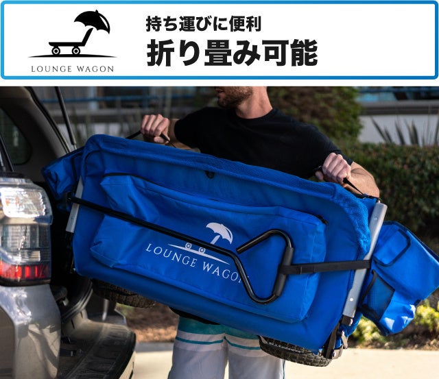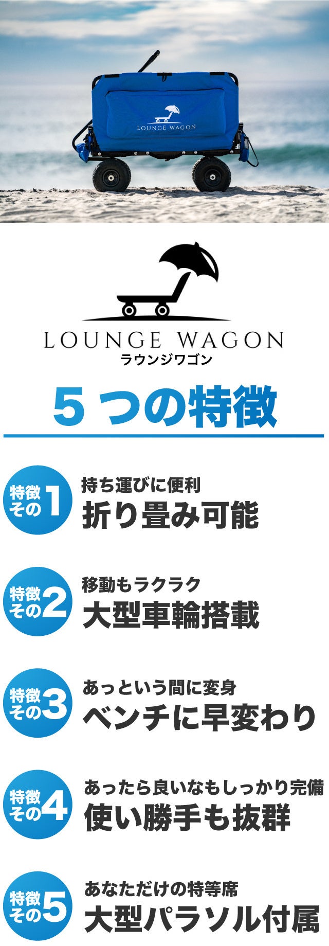 5歳と1歳の子供をビーチに連れて行く際に、ビーチチェア・タオル・クーラー・バッグ・おもちゃ・ブギーボード・パラソルといった荷物が多く何往復もしなければなりませんでした。ビーチやでこぼこの地面の上でカートを引っ張るのは困難な為、簡単に引っ張ることができるように耐久性があり全地形対応、折りたたみ可能で、使いやすいワゴンを開発しました。開発の際にはあらゆる部分の試作・改善を繰り返し、ラウンジワゴンの快適さを追求しました。