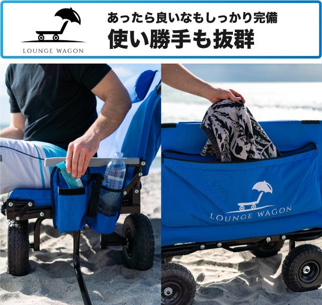 大型の車輪を搭載しているため、砂浜などの悪路でも楽に移動することができます。
