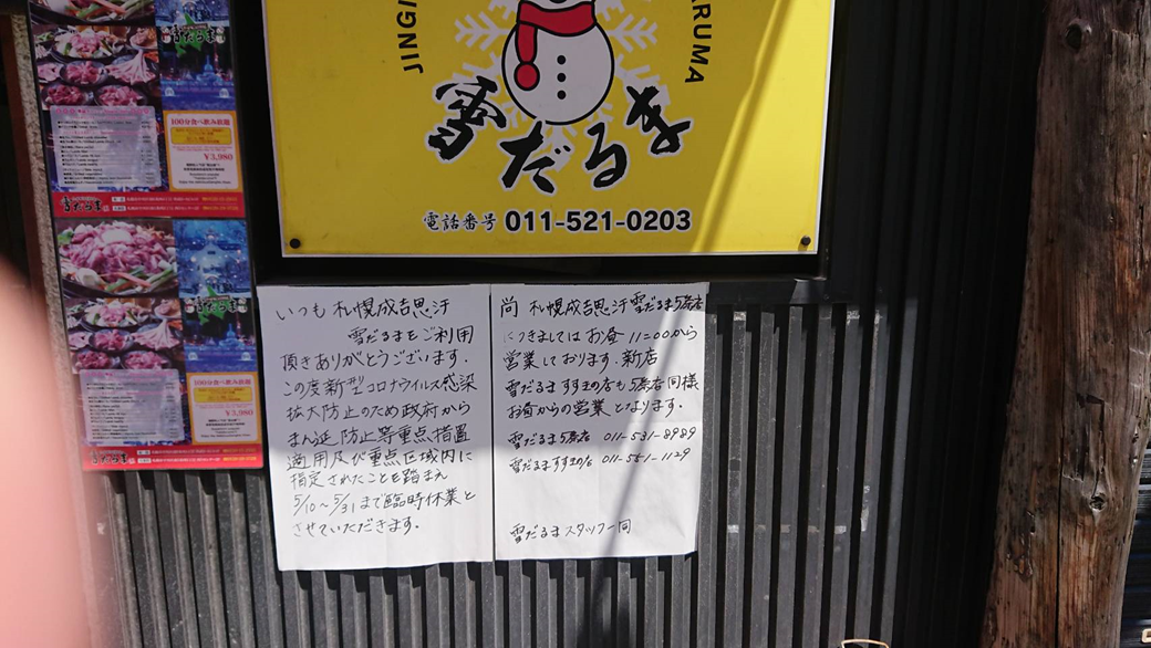 観光客が客層のほぼ10割を占める「本店」については休業をする機会が多くなり、従業員の雇用を守るためにも「五条店」と「すすきの店」はランチ営業やテイクアウト・デリバリーを始め、従業員が一人も減る事がなくこれまで頑張ってまいりました。