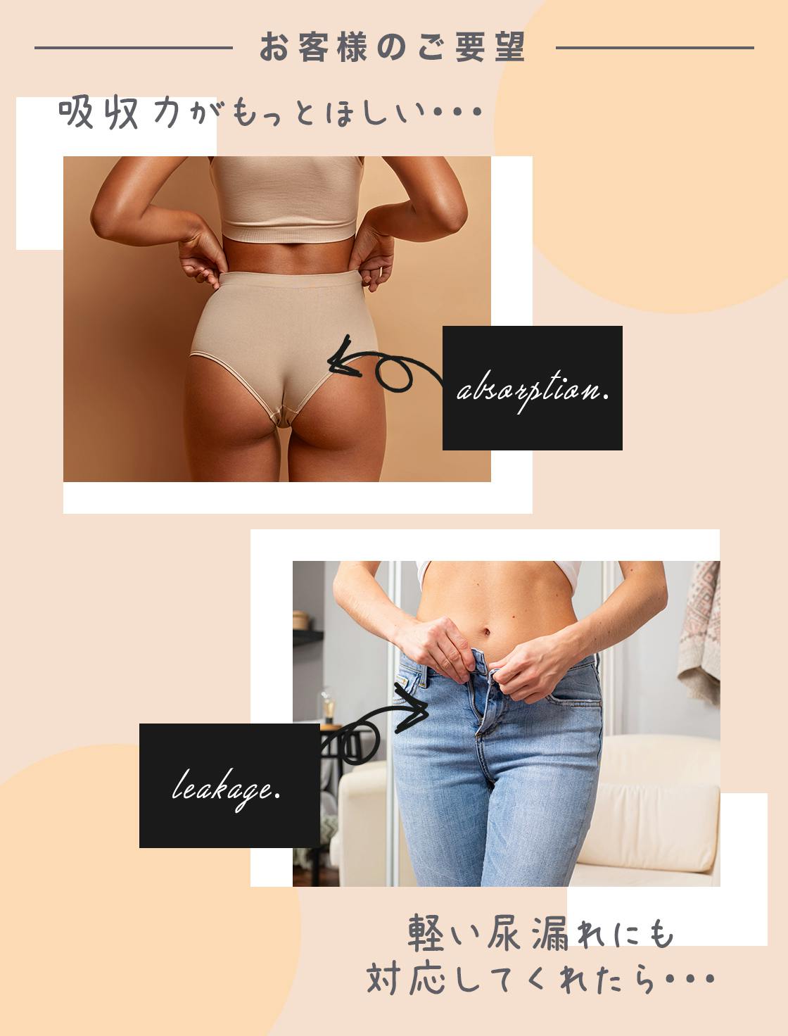 お母さん達から「ちょっとした尿漏れにも使えないかな?」でした。