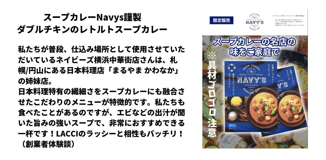 2021/10/15 19:30LACCIでは11月下旬~12月頃に数か所でポップアップを開催予定です。場所については決定次第各種SNSで発信するのでお楽しみにしていてください!↓Instagramはこちらhttps://instagram.com/lacci_lassieポップアップの内容ですが、様々なレトルトカレーや冷凍カレーとLACCIのコラボという形で開催することが決定しました!ラッシーを始めとして、漬物やチャイ、スープカレーなどカレーに関わる様々なものを販売しようと考えています。ぜひ情報をお待ちください! もっと見る