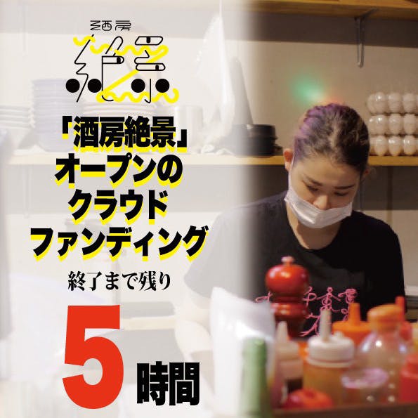 2021/08/25 16:57残り5時間になりました!酒房絶景クラファン!ほんとにたくさんの方に支援して頂きました。ありがとうございます!最後の最後で皆さまで見届けていきましょう!ケイちゃんの新たな人生の幕明けをみんな共有しましょう。残り5時間です! もっと見る最終日になりました!支援者の方が182人突破!