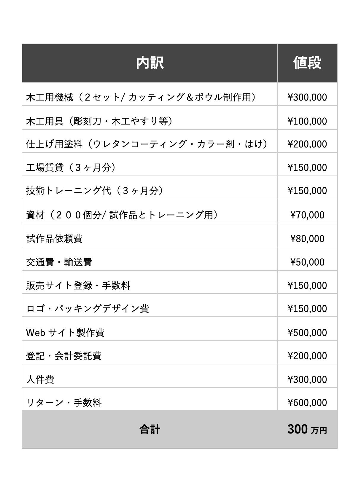 試作品だけでなく販売を始められるよう、ウェブサイトやロゴ作成、会社の登記にかかる費用も追加しました。