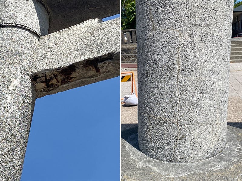 当社は東日本大震災の影響で本殿ならびに社務所が被害を受け、本殿並びに社務所の再建をようやく終えたばかりでした。鳥居のあちこちが痛んでいる事は承知しておりましたが正直私どもの力だけではどうにもできない状況でした。今年に入り宮城県沖を震源とした震度5強の大きな地震が何度もありました。そのたびに鳥居を心配して飛びだしていくことが度々ありました。