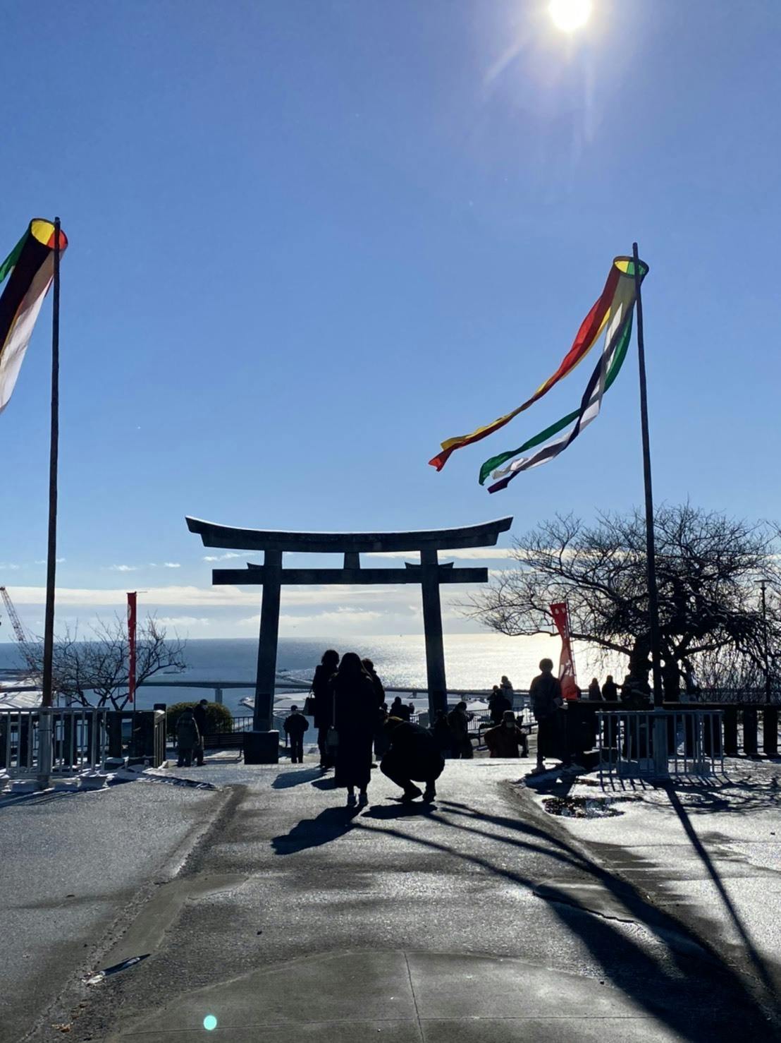 石巻に復興支援に訪れた多くに人が鳥居越しに見える海の見える素晴らしい景色を撮影しています。