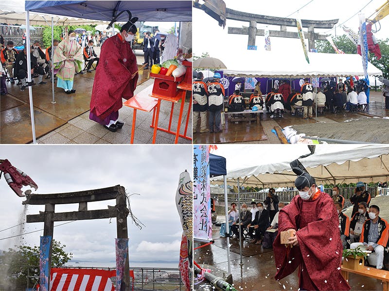 鹿島御児神社の大鳥居は度重なる地震や経年劣化により倒壊のおそれがあるということで解体せざるを得ない状況になり、2021年5月22日に地元の企業様ご協力のもと、解体いたしました。