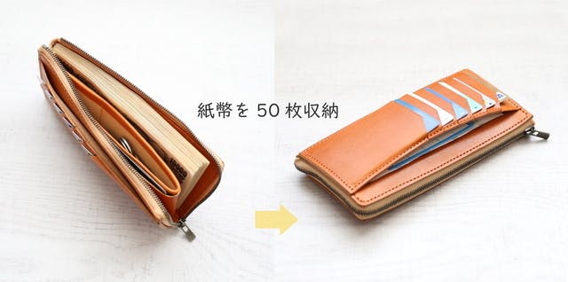 ②薄くて小さいのに、驚くほどの大容量。矛盾とも思える2つの要素が共存した長財布。