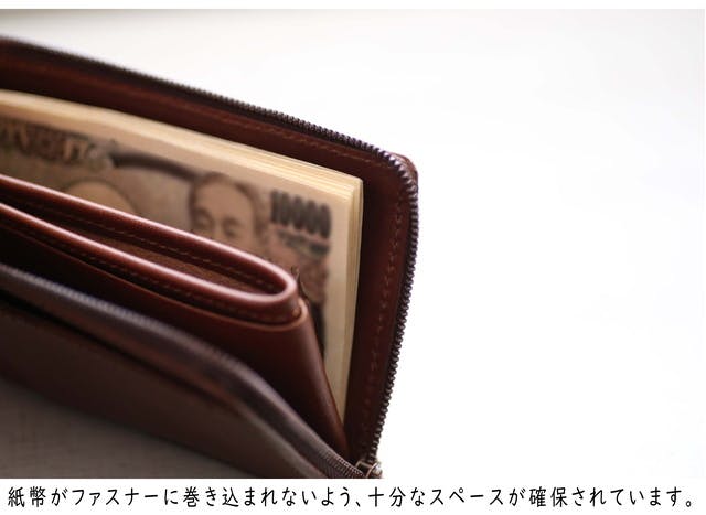 また、ファスナータイプの長財布の場合、「紙幣がギリギリ収まる」では紙幣がファスナーに巻き込まれる可能性が非常に高くなるため、ある程度の余裕が必要になります。