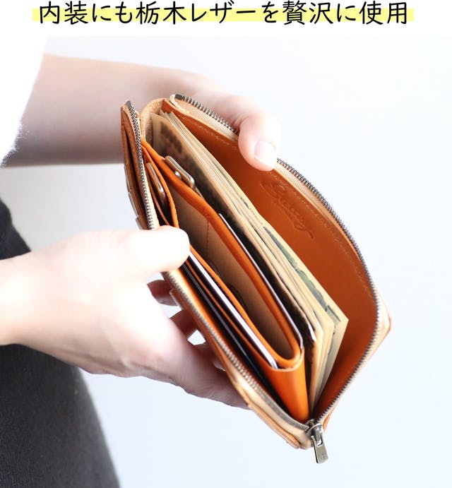 よく内装には、牛革より安価な豚革や人工生地などを使用されることが多いですが、「FRAGMANzip」は札入れ内装にも同じ栃木レザーを贅沢に使用しております。高級感と使いやすさが段違いに向上します。