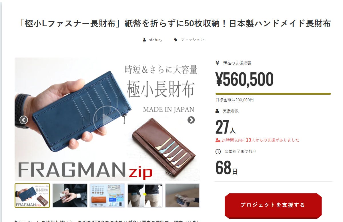 前作のプロジェクト「FRAGMAN」は長財布派に向けたキャッシュレス時代の財布、というコンセプトで国内クラウドファンディングにてプロジェクトを立ち上げさせていただきました。