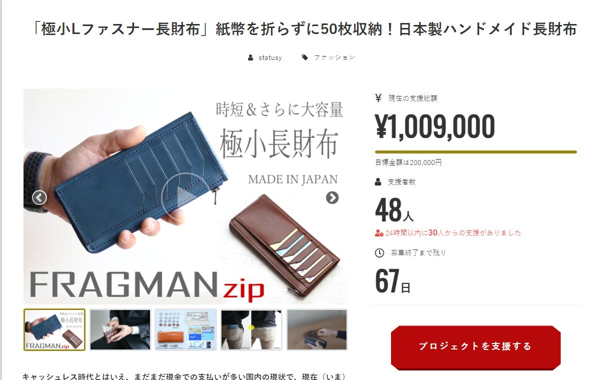 2021/07/15 17:02みなさまこんばんは!お陰様でSTATUSY(ステータシー)のプロジェクト「FRAGMANzip」がプロジェクト開始よりわずか3日余りで支援金額100万円を突破しました!!ご支援くださった皆様、本当にありがとうございます!!感謝の思いでいっぱいです!ネクストゴールを200万円に設定し、新たな目標に向かって突き進みます!引き続き応援のほどどうぞよろしくお願いいたします。ステータシー 田中比呂達 もっと見る