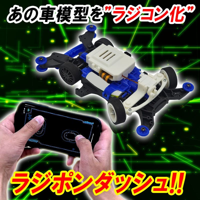 車模型とこのパーツさえあれば、スマホアプリと連動し、あの車模型を簡単に”ラジコン化”できる専用パーツです。
