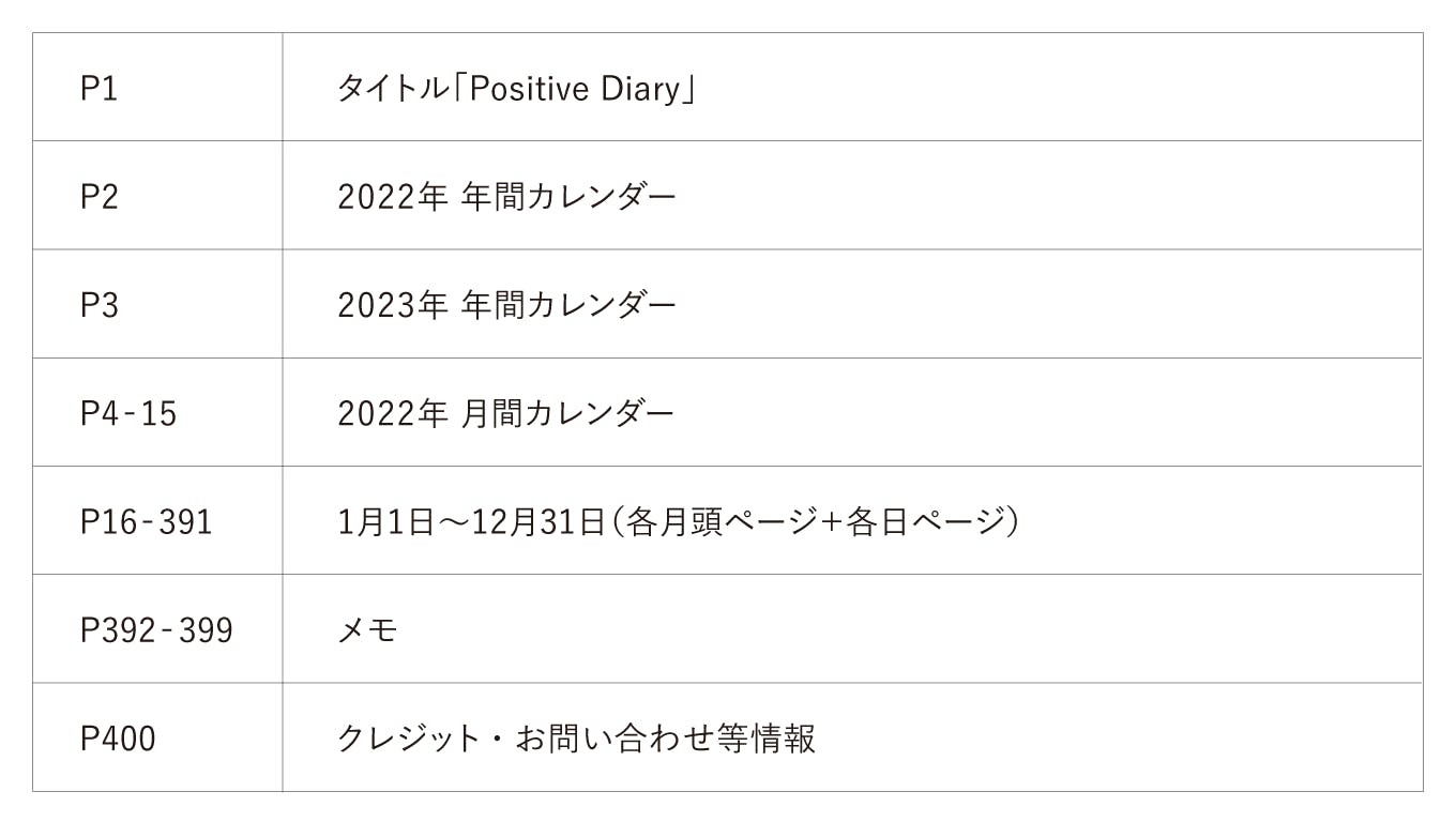 「Positive Diary」の各日ページにあなたのポジティブメッセージを記載させて頂きます。