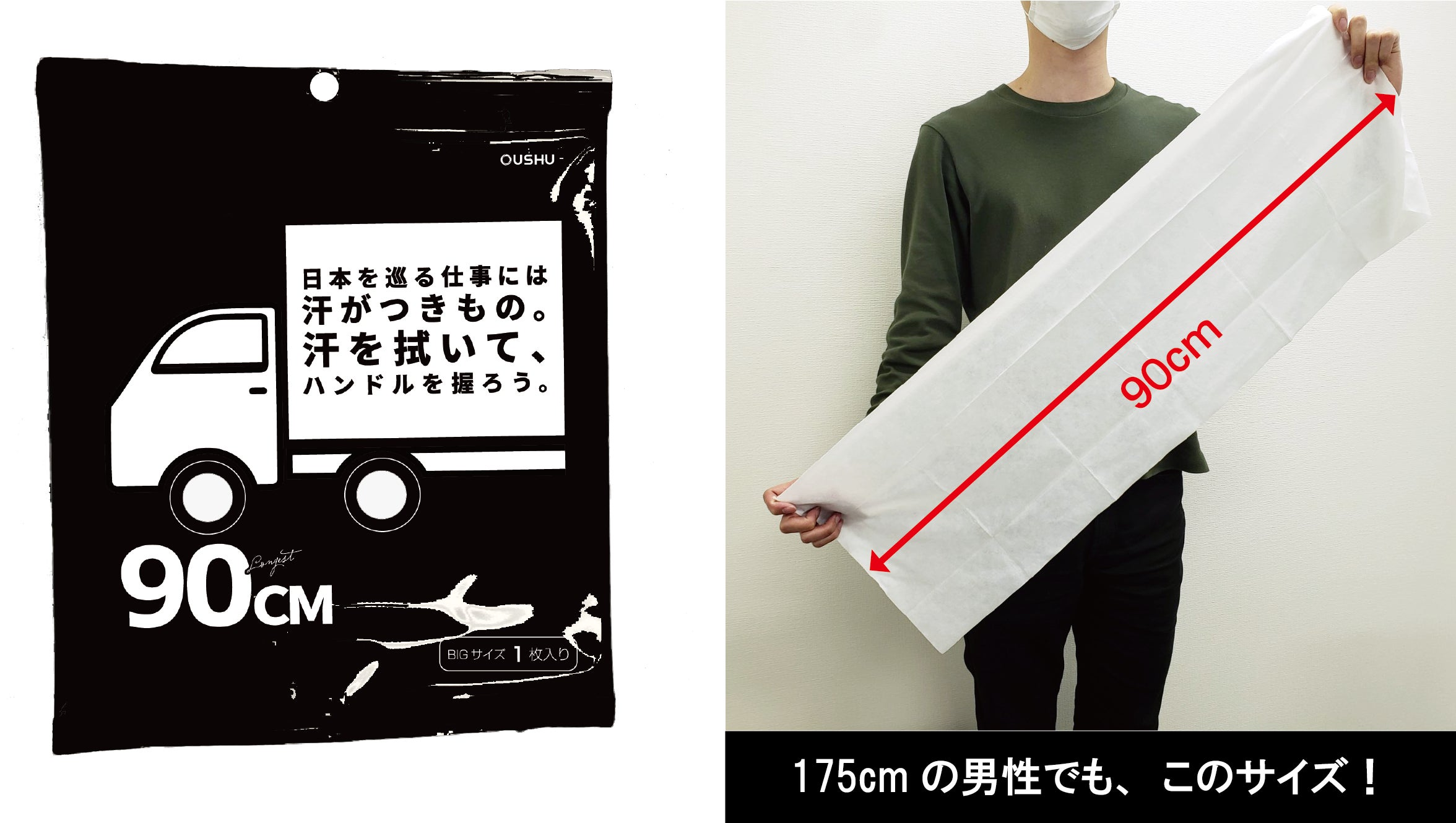 長時間の運転で汗をかいても、全身をふき取れる90cmのボディシートがあればもう安心です。